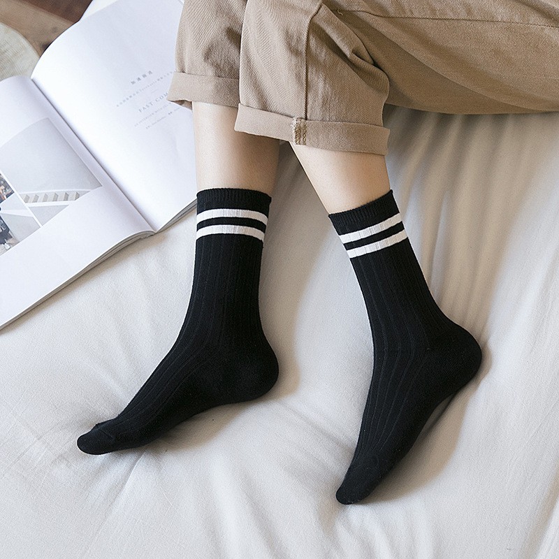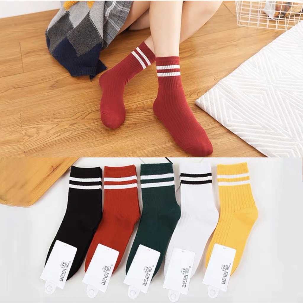 Kaos kaki Wanita bergaris kaus kaki olahraga Socks kasual kaos kaki mahasiswa fashion D36