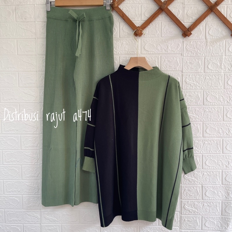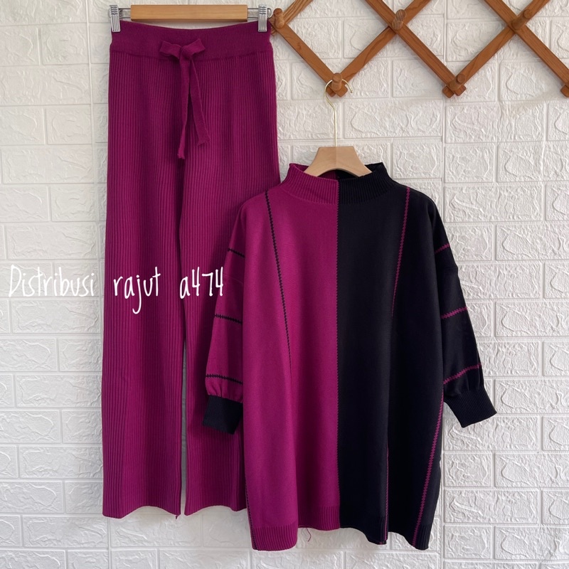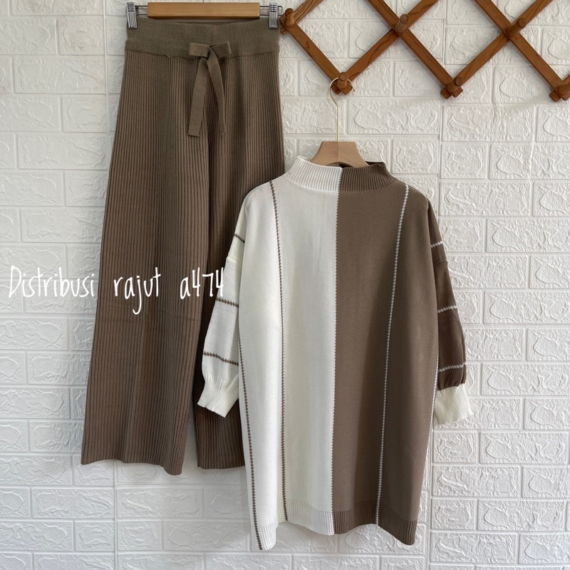 ONESET DRESS FADILLA ATASAN SETELAN CELANA KULOT RAJUT WANITA