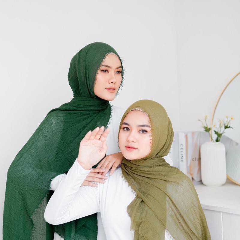 Pashmina Crinkle hijab daily yg lagi hits paling laris paling laku, bahan nya adem, mudah dibentuk. tidak menerawang dan tdk perlu disetrika.