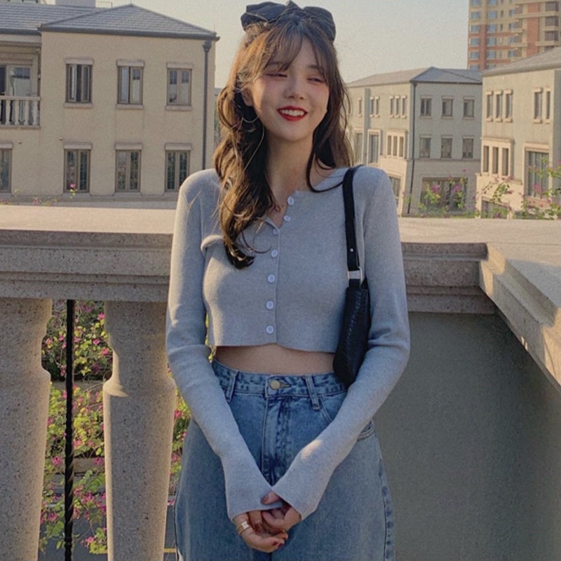 MILUX.CO - CARDIGAN CROP TOP KNIT IMPORT KOREAN STYLE RAJUT LENGAN PANJANG OUTER ATASAN WANITA MX908
