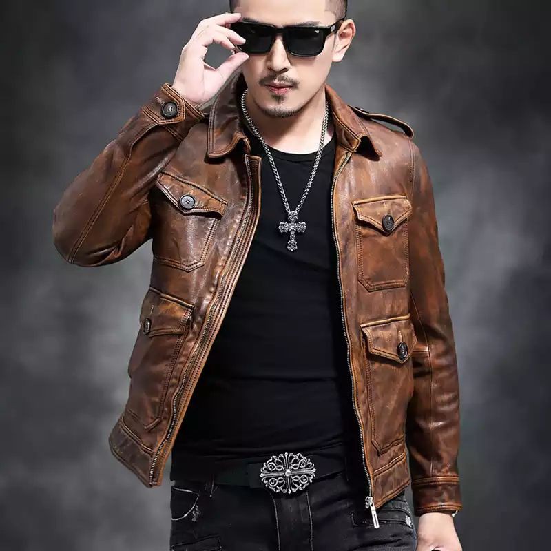 JAKET KULIT PRIA TERBARU 2021 ASLI DOMBA SPESIAL WARNA COKLAT MOTIF BELANG/SPINIL PREMIUM