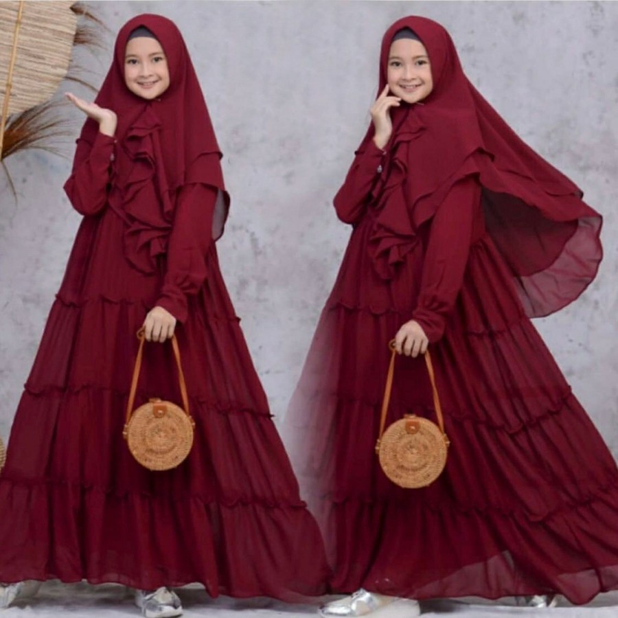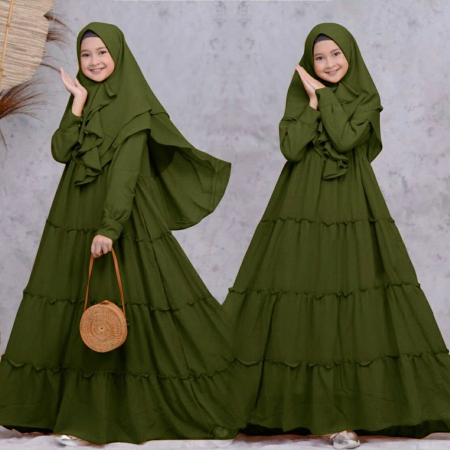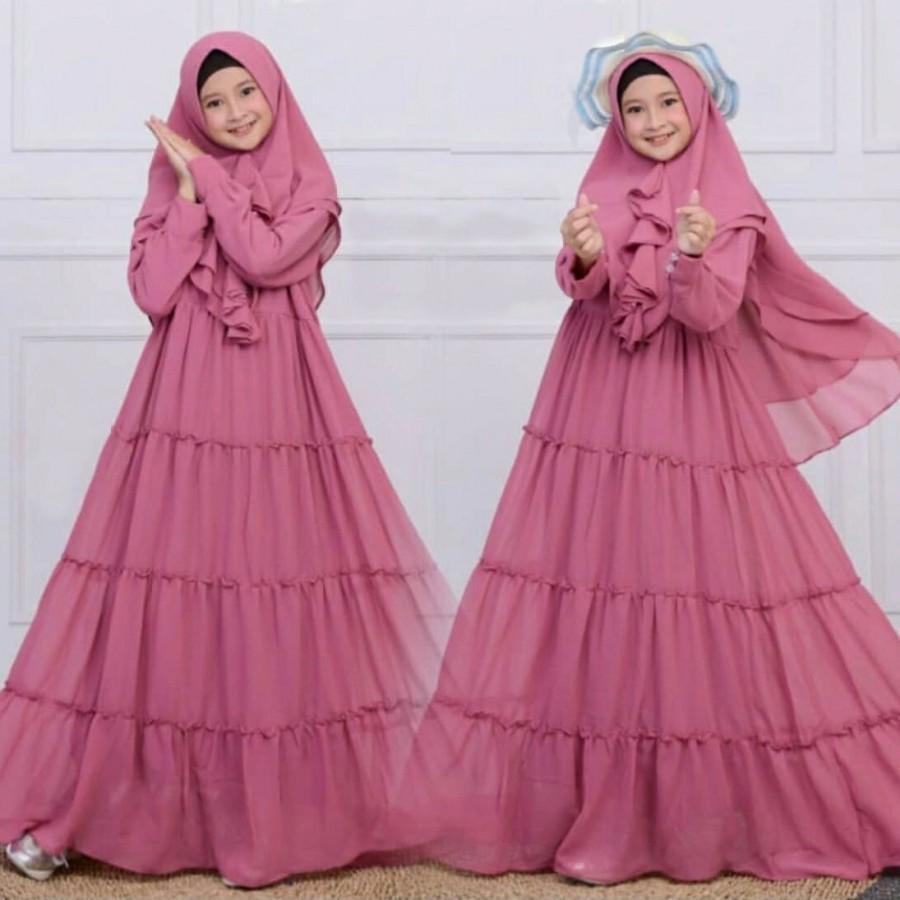 Busana muslim gamis anak perempuan syar i Bahan maxy Moscrepe 7 8 9 10 11 12 13 14 tahun umur usia