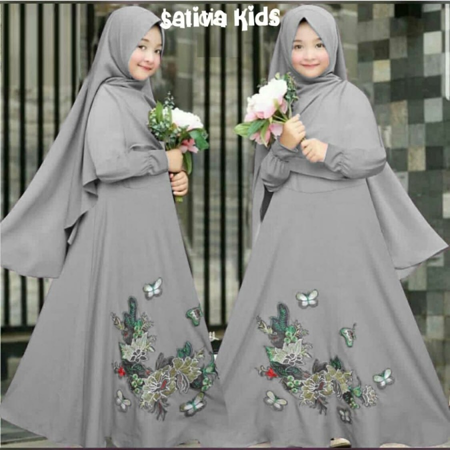 Gamis Anak Syari Bergo Flower Sativa - 9-12th Gray