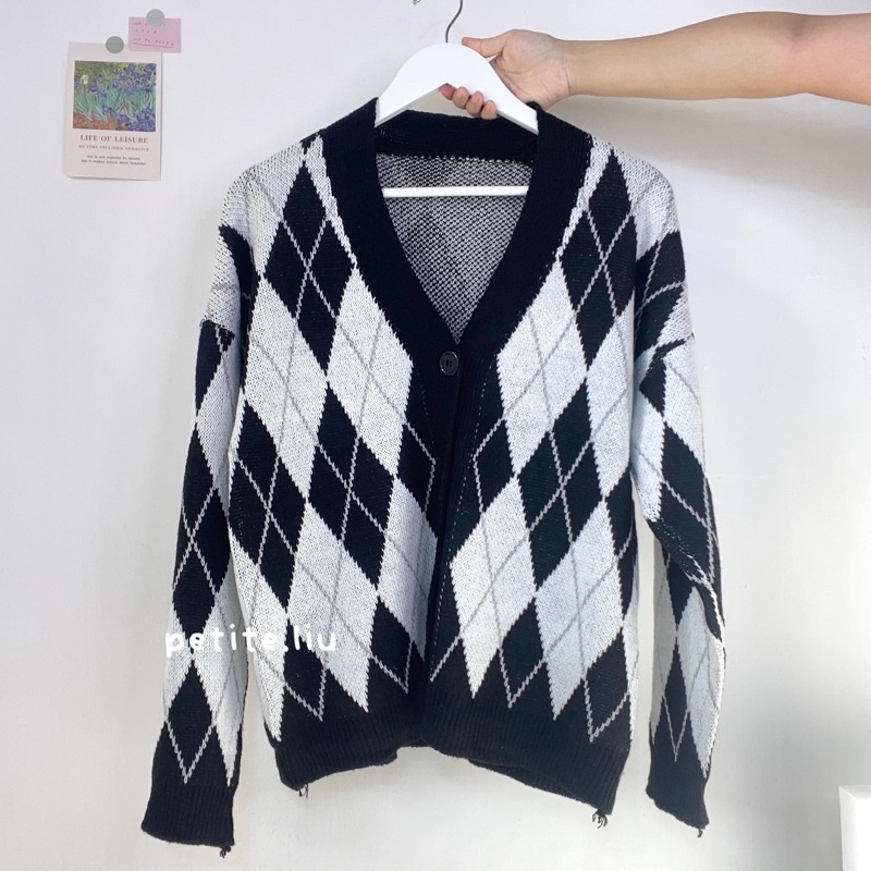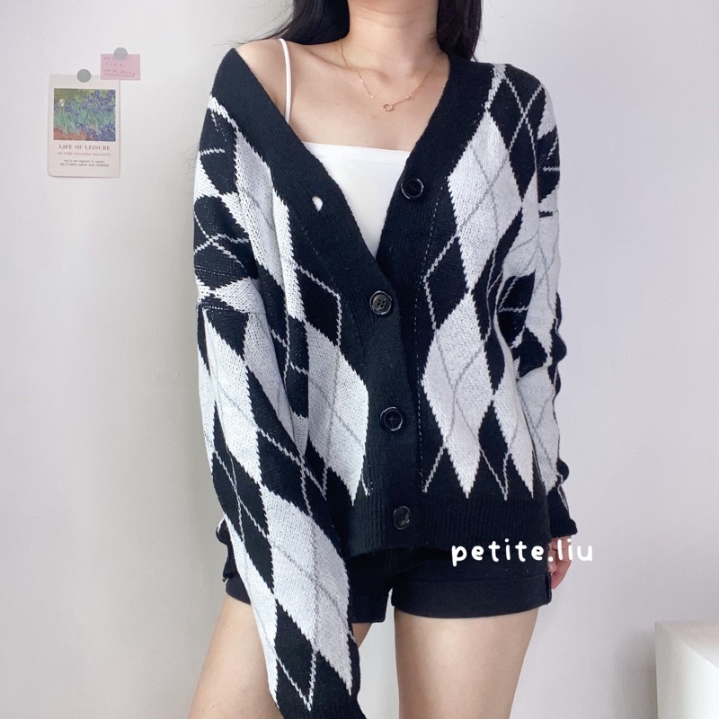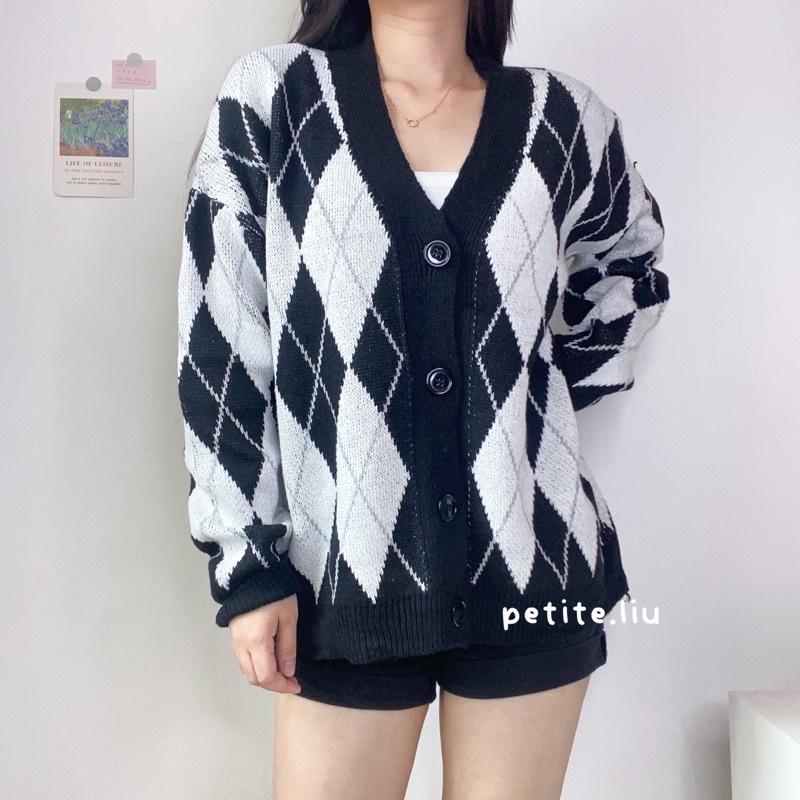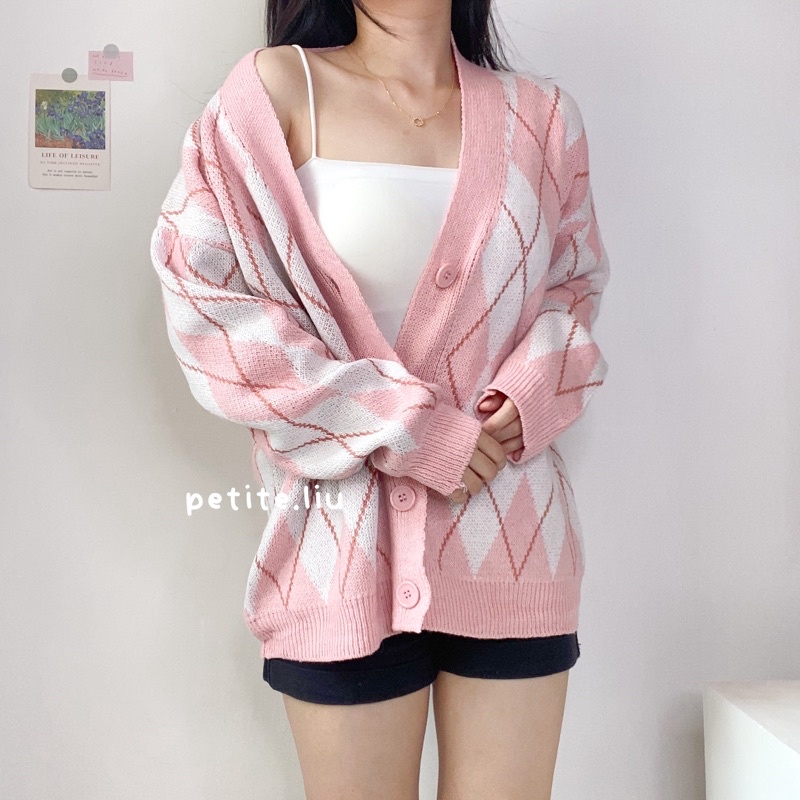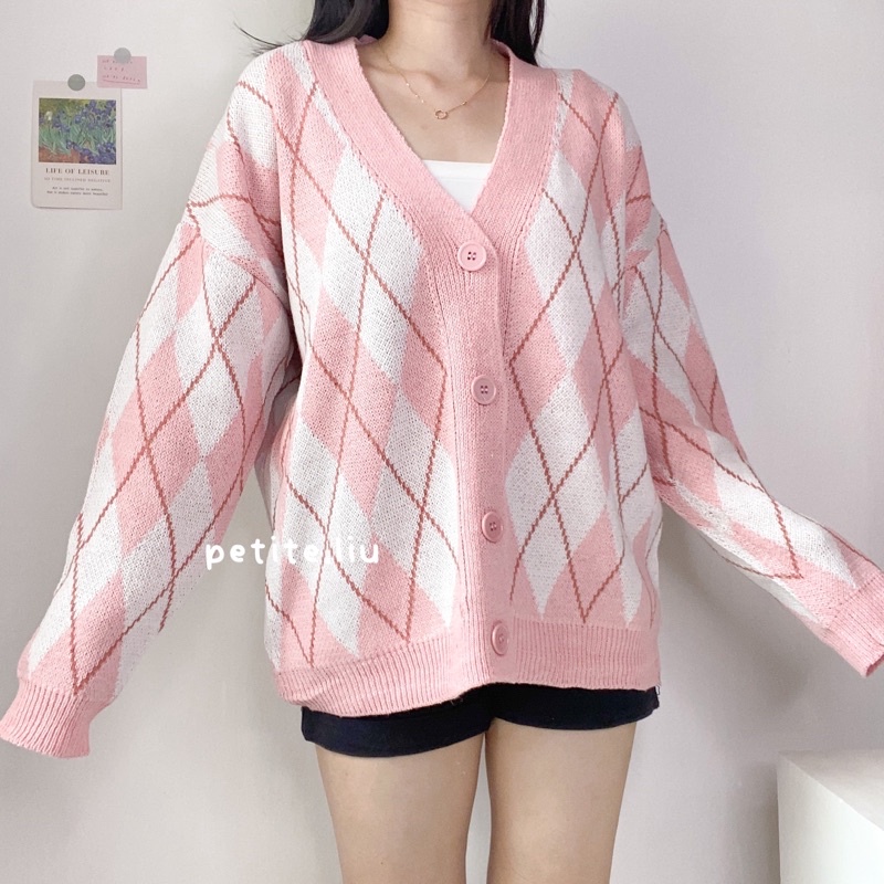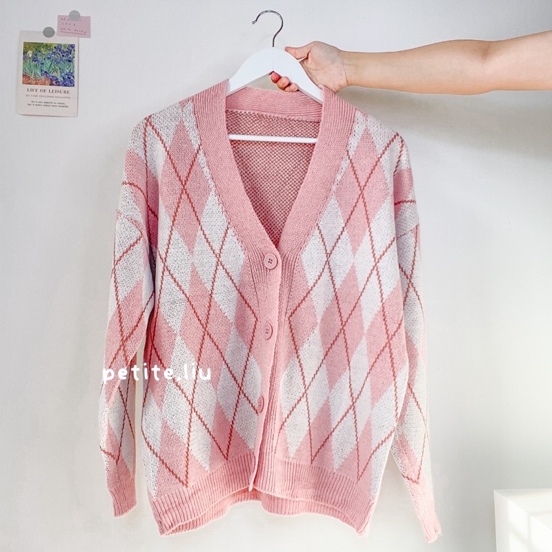 Nara Cardigan Rajut Wanita Knit Import Korean Style Motif Argyle Premium Tebal Lengan Panjang