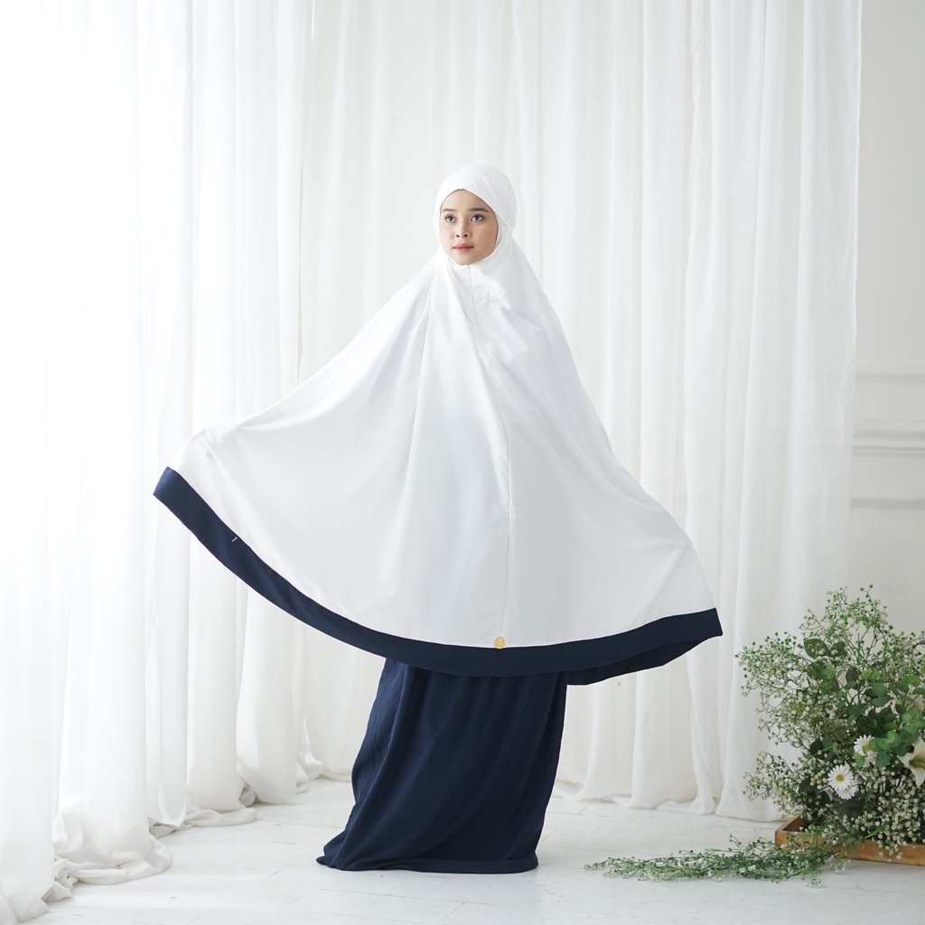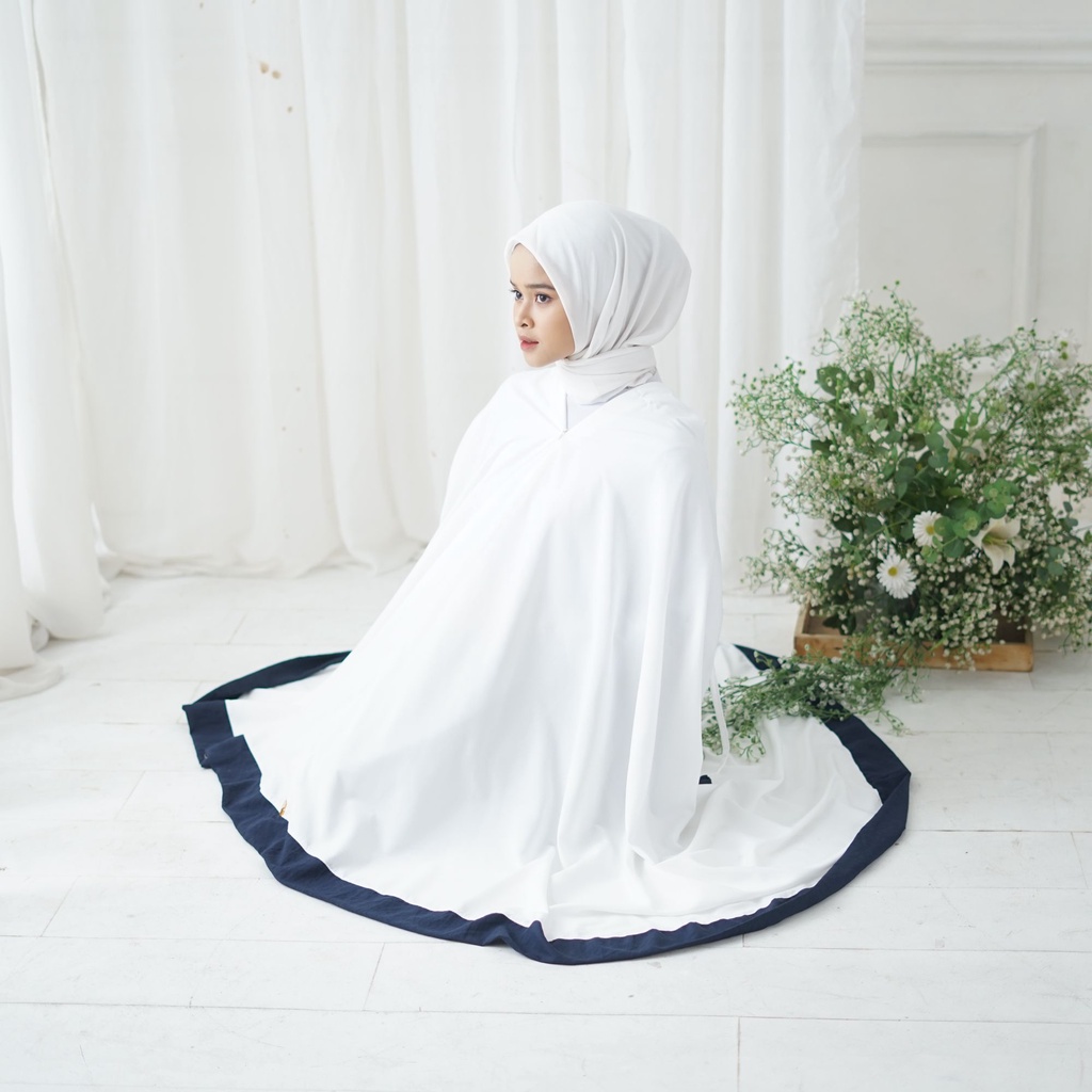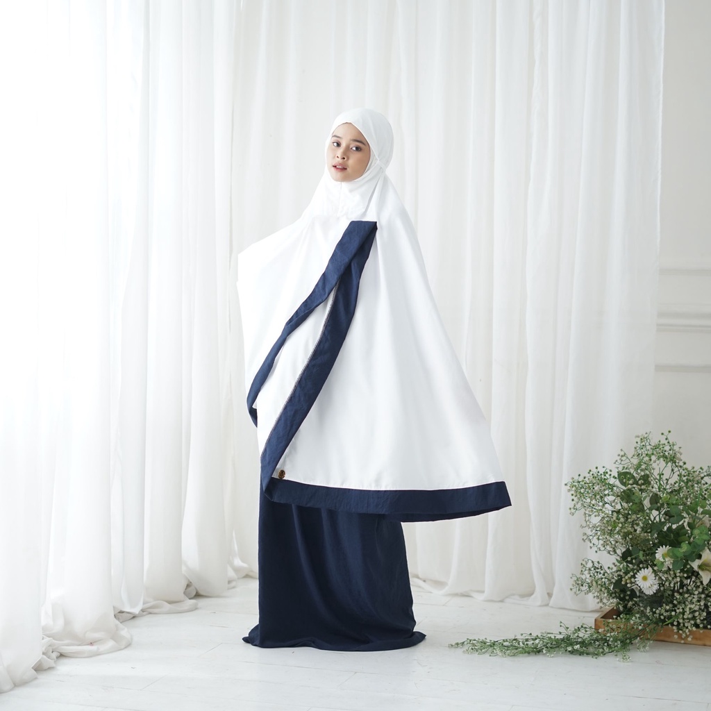 Mukena Santri Gontor - Saudah Series Putih Navy / Mukena Polos Santriwati Gontor / Mukena Pondok Pesantren