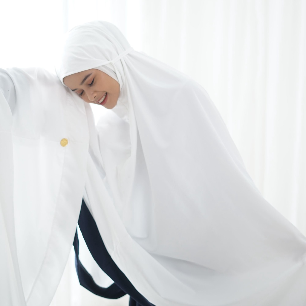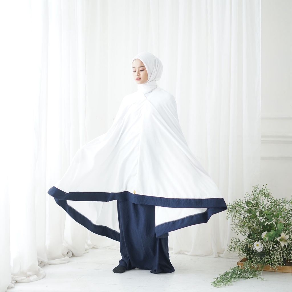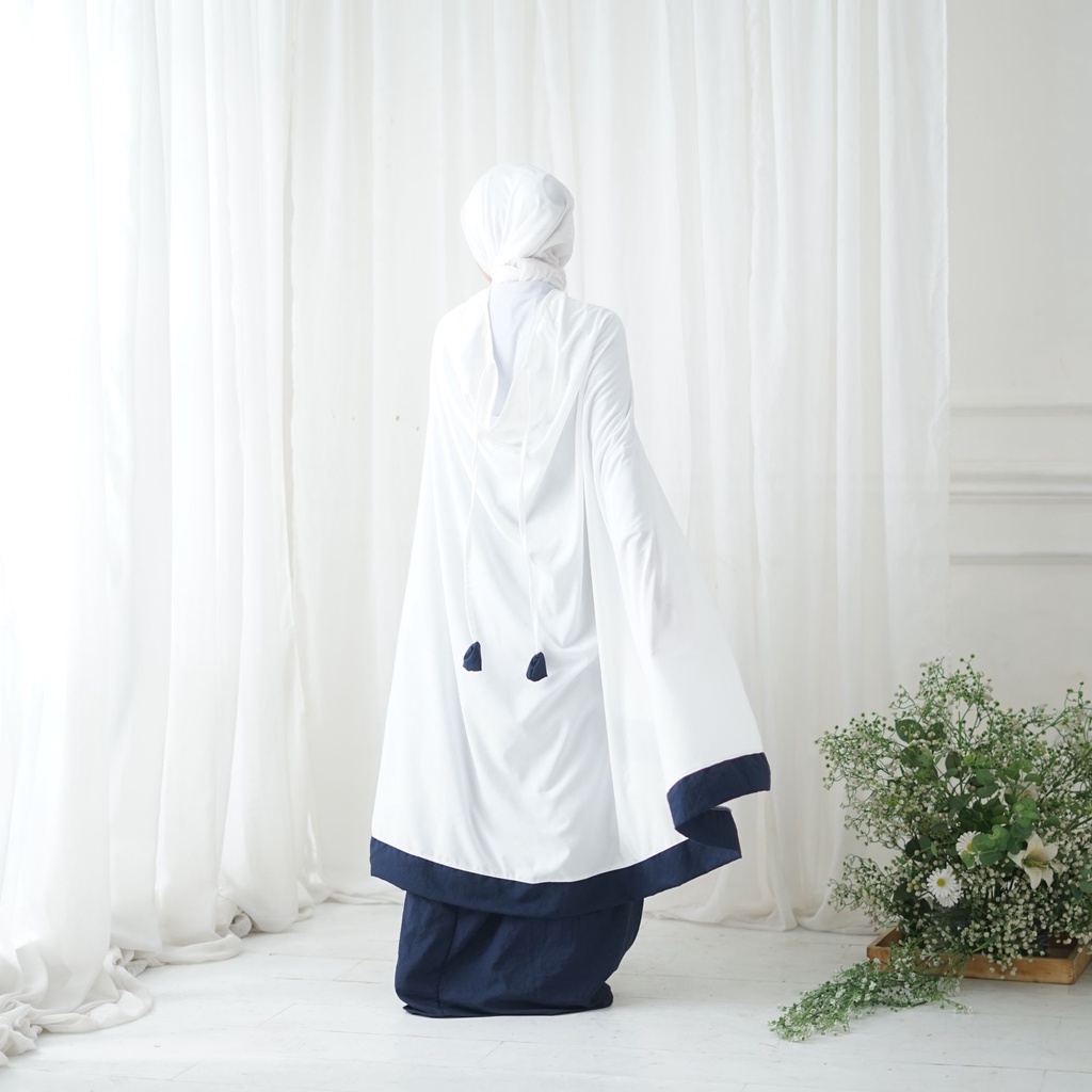 Mukena Santri Gontor - Saudah Series Putih Navy / Mukena Polos Santriwati Gontor / Mukena Pondok Pesantren