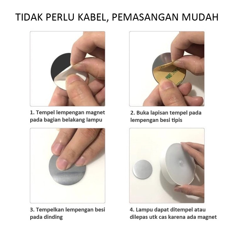 Lampu Sensor Gerak LED dapat di cas berulang-ulang (dilengkapi dengan magnet untuk memudahkan pengecasan dan dipindahkan.