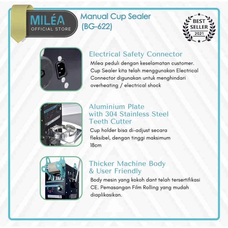 [ MILEA ] Milea Premium Manual Cup Sealer Mesin Press Gelas High 180 mm - GARANSI RESMI MILEA 1 TAHUN