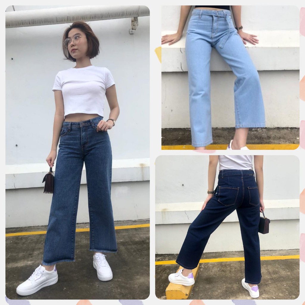 Celana Jeans wanita, boyfriend Cullotes/kulot