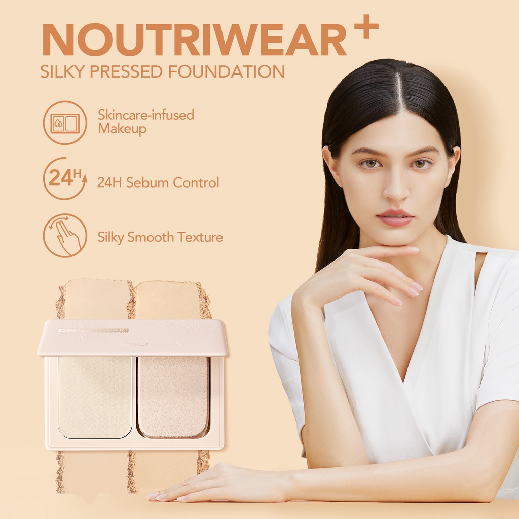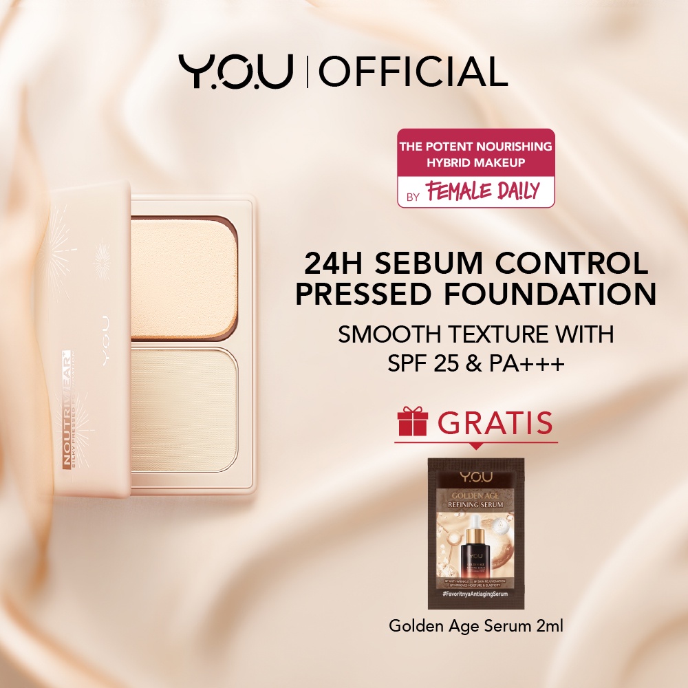 YOU NoutriWear+ Silky Pressed Foundation | Full Coverage | Oil Control & Tahan Lama 24 Jam | Nourishing | Kosmetik