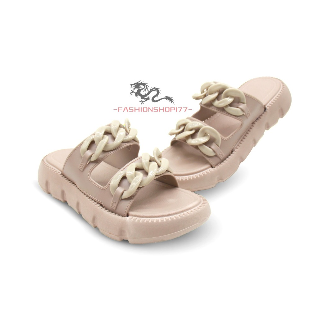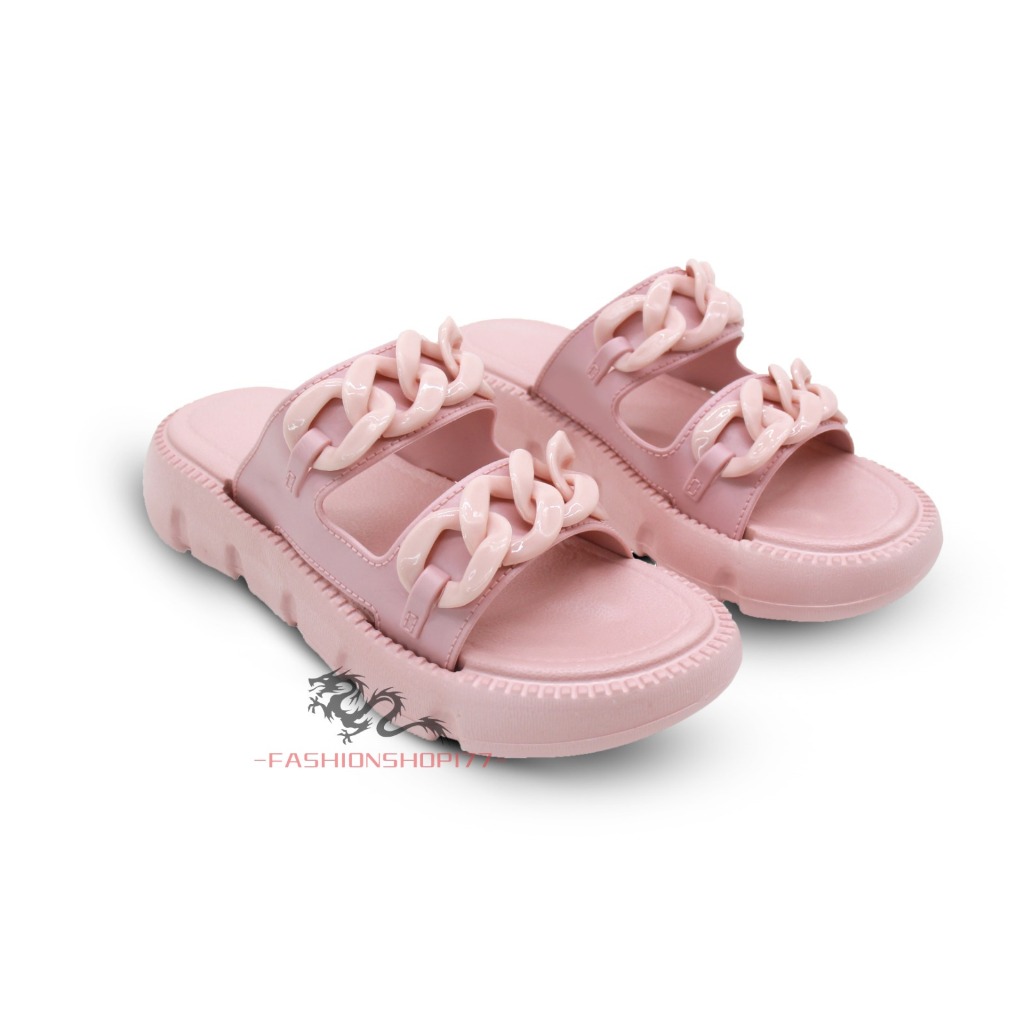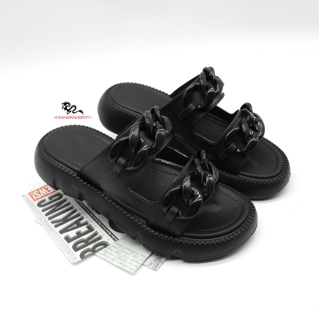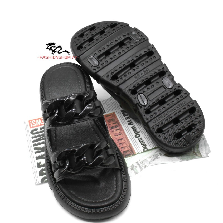 Sandal Wanita Sandal Selop Bahan Karet Empuk Kekinian Model Rantai Terbaru Size.36-41