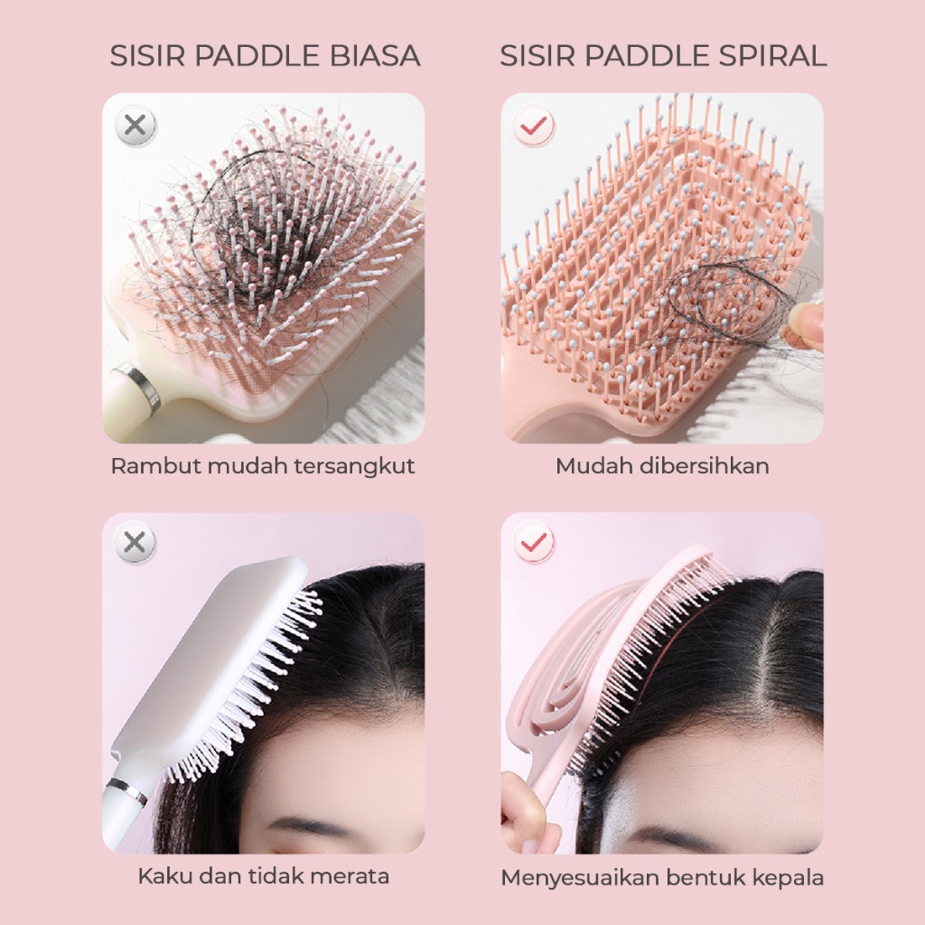 Sisir Paddle Pengembang Rambut - Sisir Spiral Lentur - Sisir Pijat