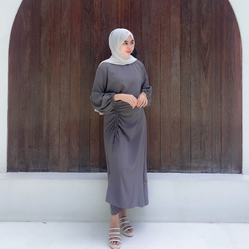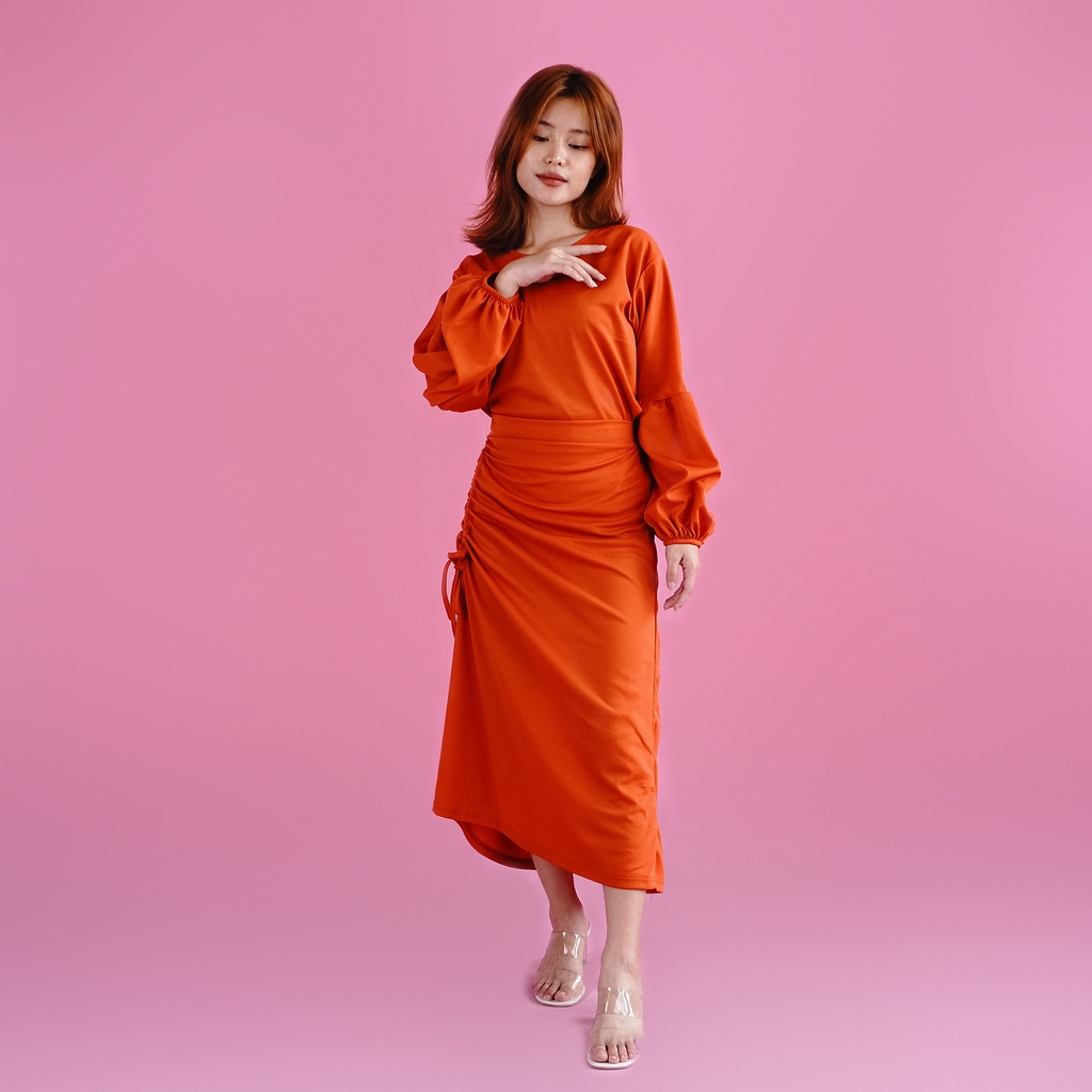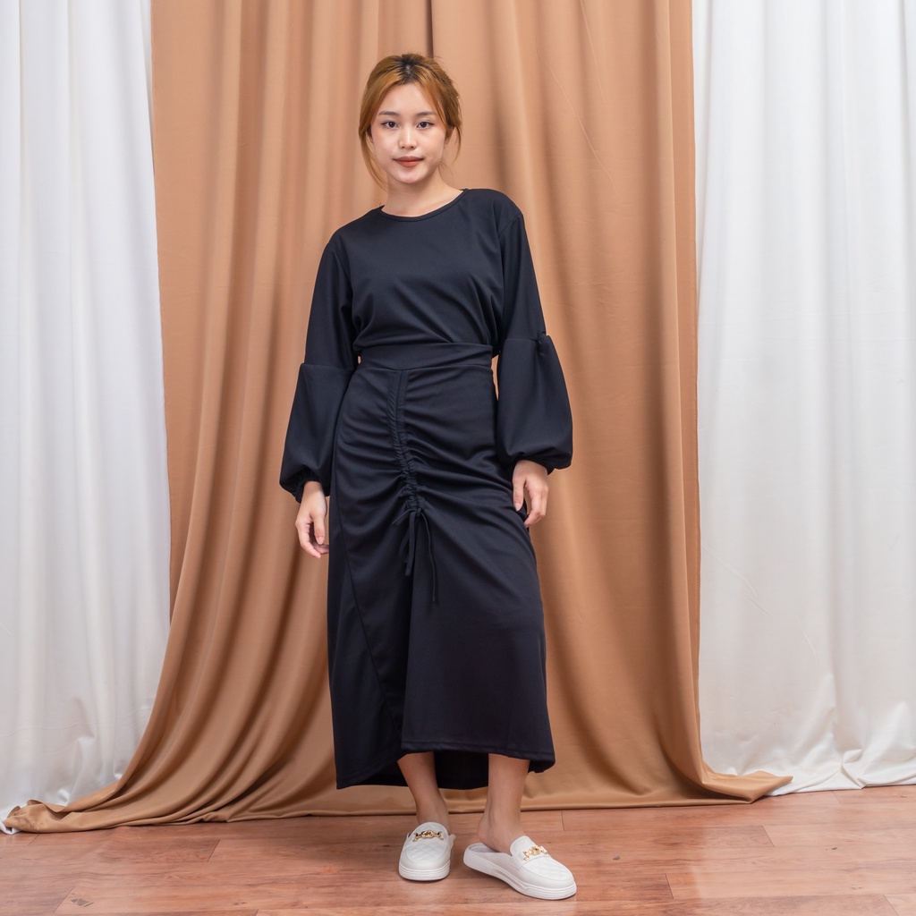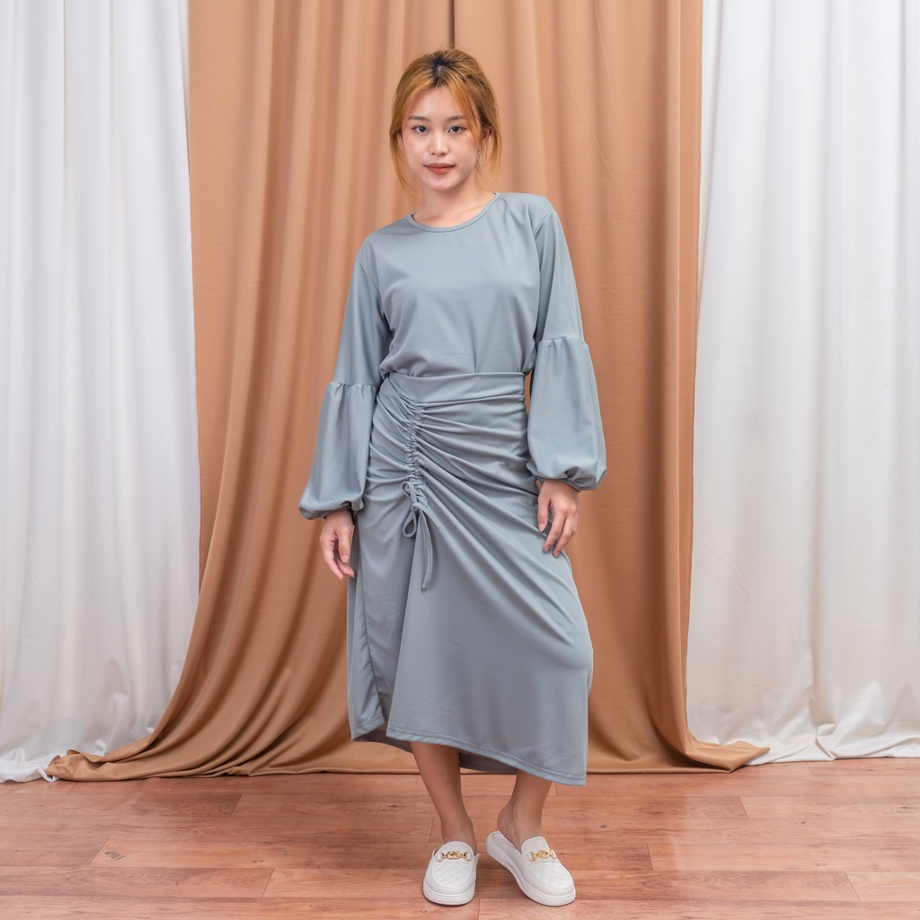 SET WANITA ROK SERUT & BLOUSE LENGAN BALON FASHION MUSLIM WANITA