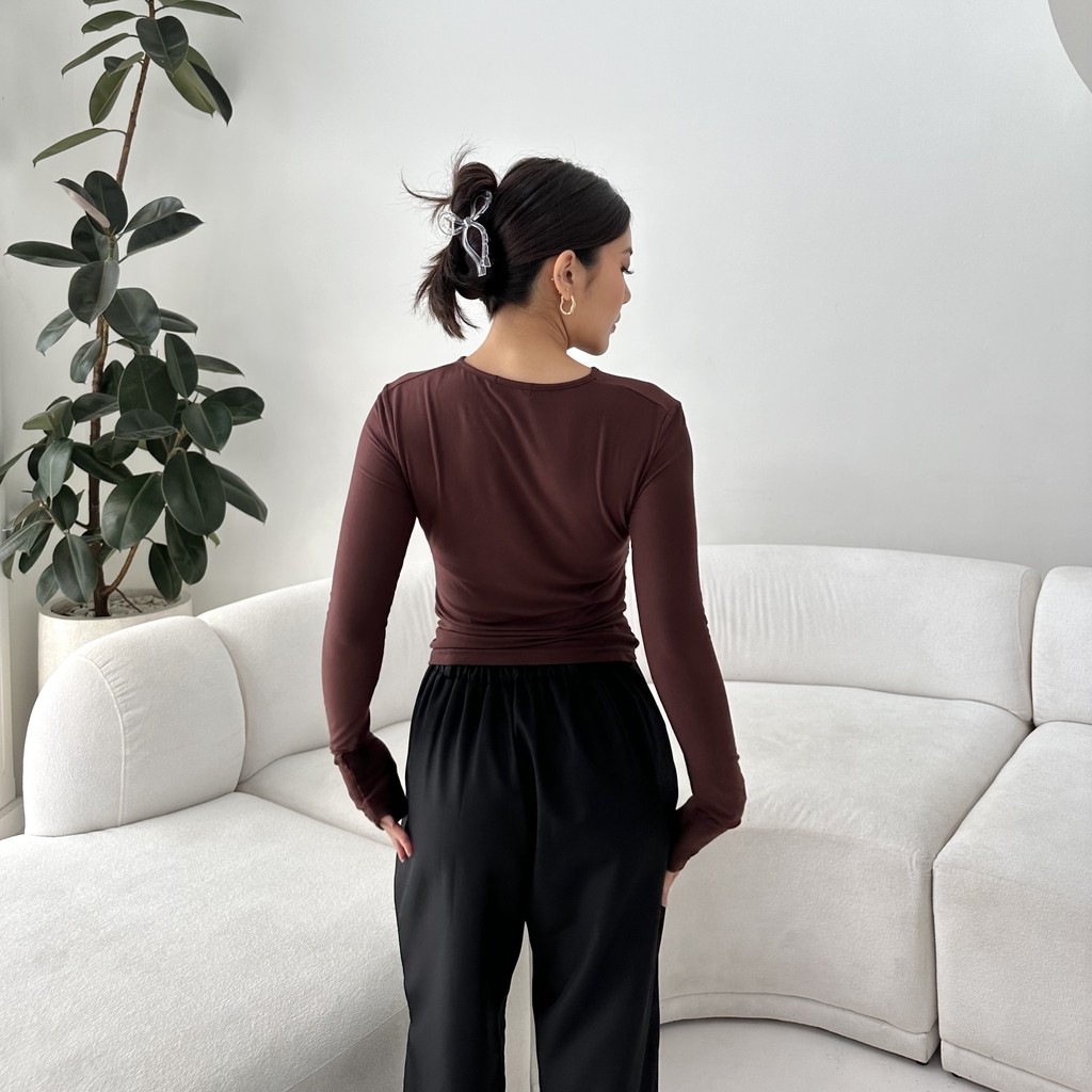 GINNY TOP - Atasan Wanita Lengan Panjang Kaos Korean Top Basic Baju Summer Knit Rib Long Short Sleeve Posha
