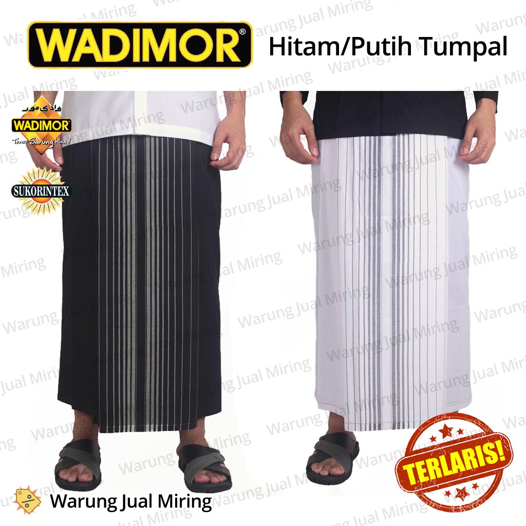 Sarung Wadimor Hitam Putih Polos Tumpal Salur Kain Tenun Sholat Pesantren Santri Dewasa Pria Laki