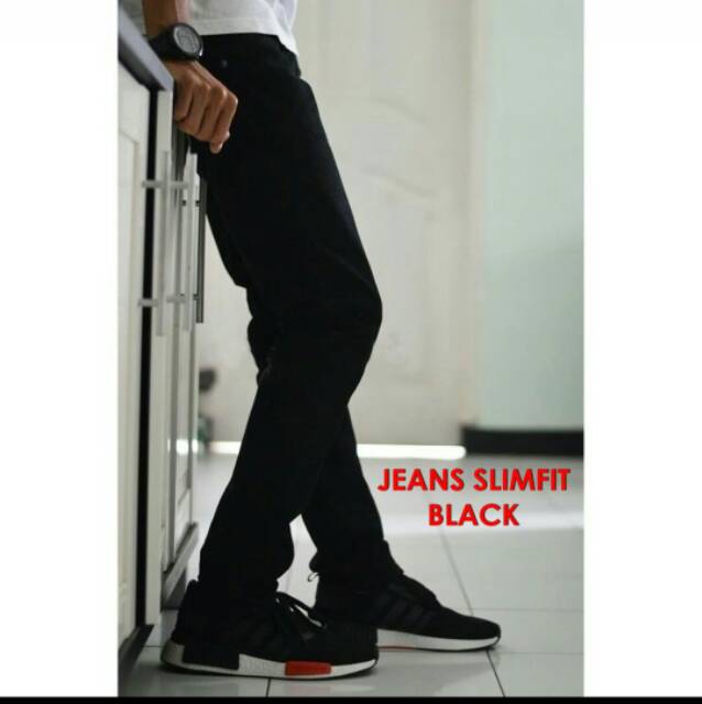 Celana panjang pria Original model slim fit - Jeans slim fit pria celana Hitam full black