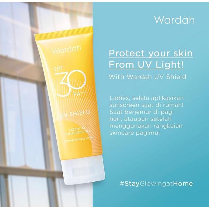Wardah Sunscreen Gel merupakan pelindung matahari bertekstur gel lembut dengan formula baru dan membuat kulit terasa nyaman. Diperkaya dengan SPF 30 untuk perlindungan maksimal pada kulit. Dengan dua kali perlindungan dari UV A dan UV B, Aloe Vera, dan Pro Vitamin B5 sebagai pelembab dan Vitamin E sebagai anti oksidan. Mengkondisikan dan melembabkan kulit. Tidak lengket maupun berminyak, non-comedogenic, dan mudah menyerap.