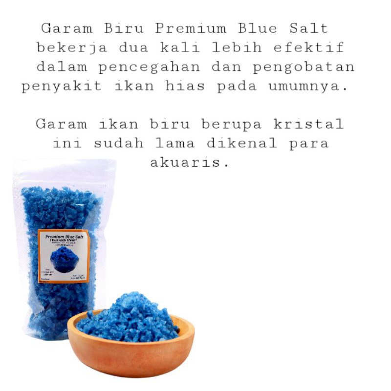 Garam Biru Premium Blue Salt bekerja dua kali lebih efektif dalam pencegahan dan pengobatan penyakit ikan hias pada umumnya. Garam ikan biru berupa kristal ini sudah lama dikenal para akuaris.