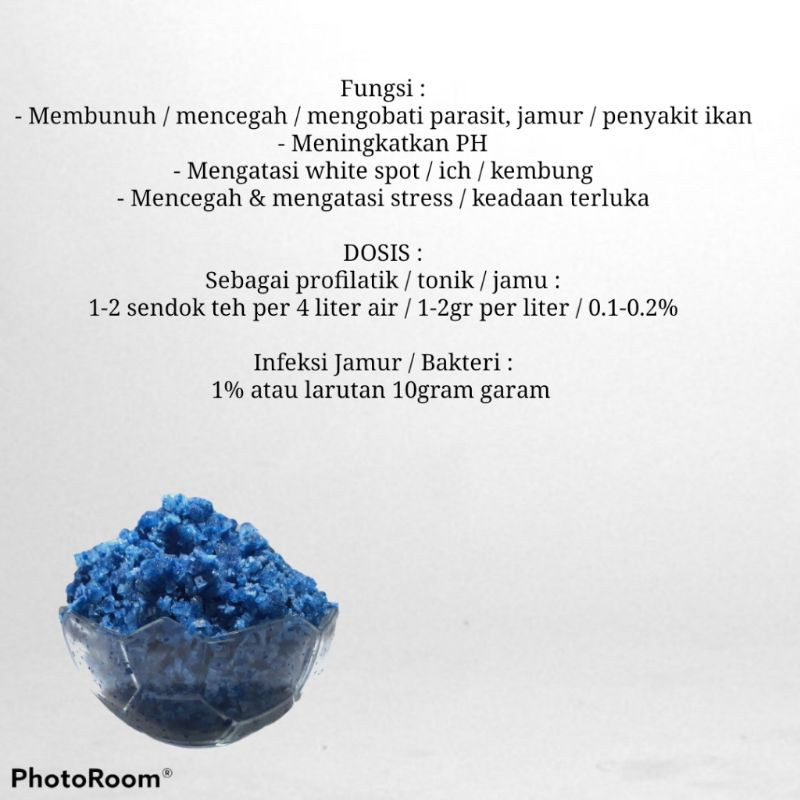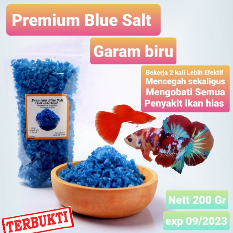 Garam Biru Premium Blue Salt 200 Gram. Mencegah dan mengobati penyakit ikan hias Cupang Koi koki dll