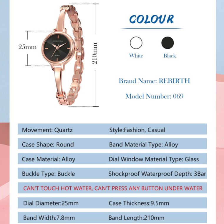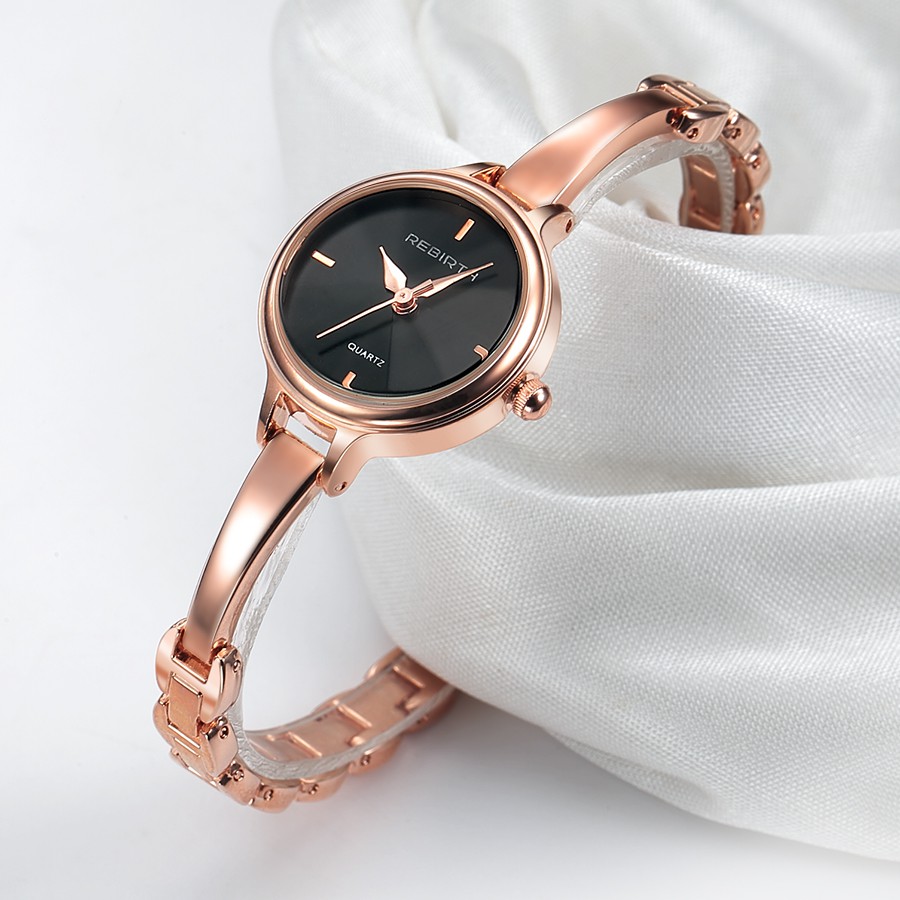 REBIRTH Jam Tangan Wanita Untuk Baja Penuh Gelang Display Kuarsa Tahan Air Jam Tangan Gelang Cewek