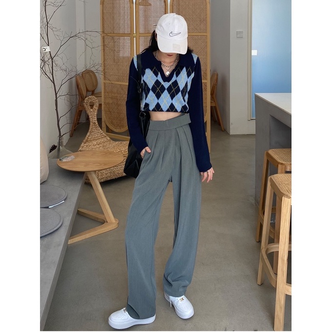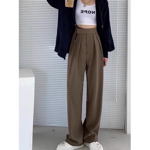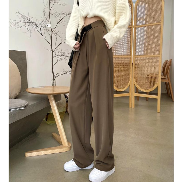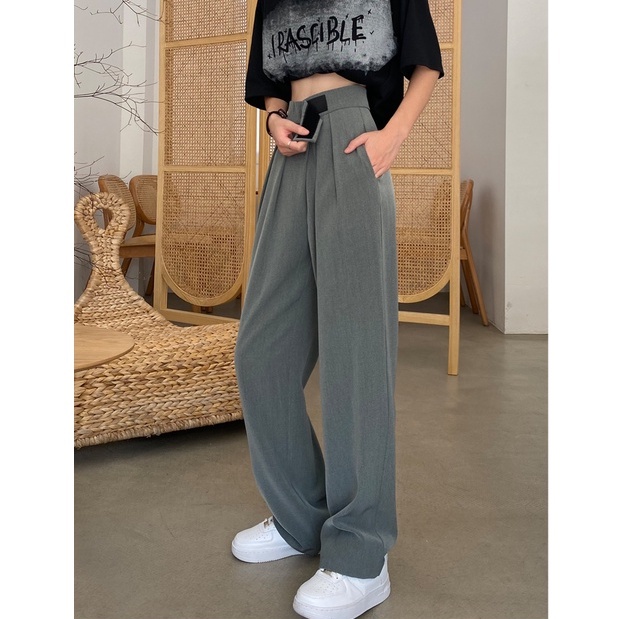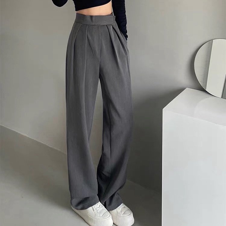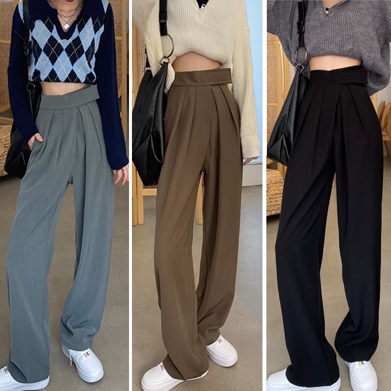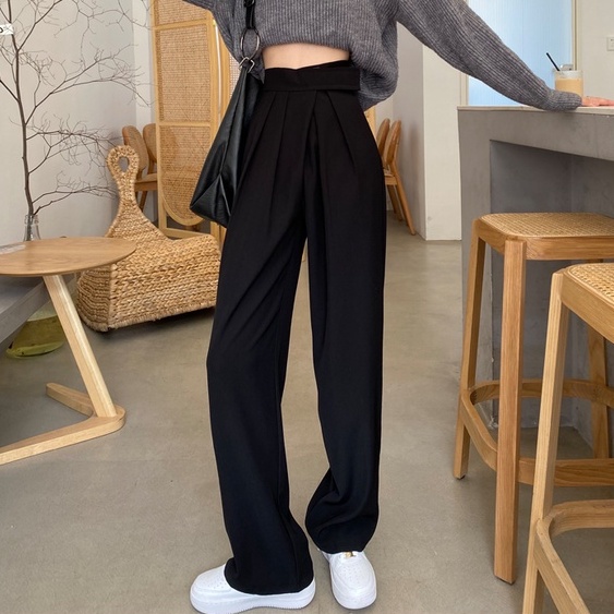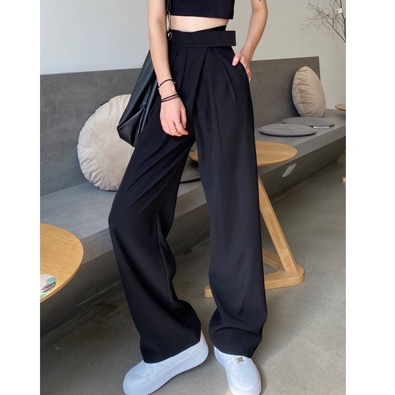 celana velcro celana kulot hitam kasual wanita korean style loose high waist trouser pants