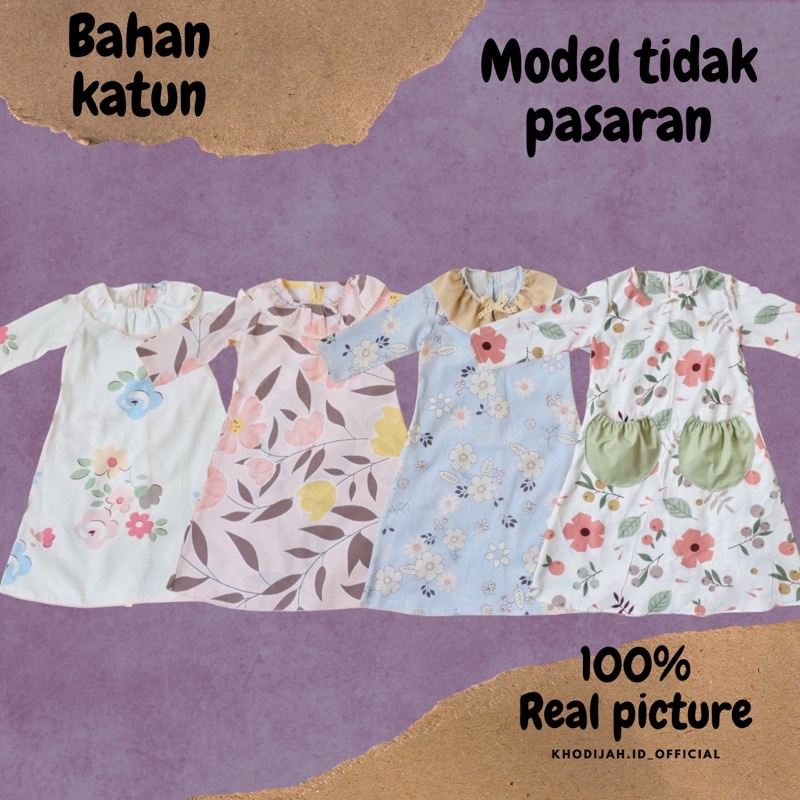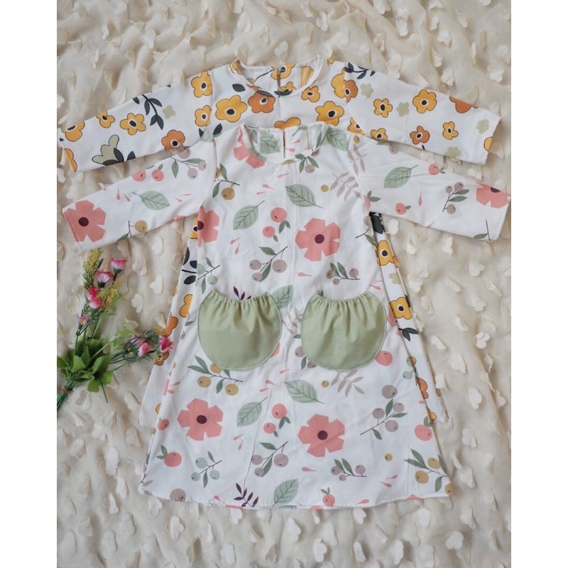 DAISY baju anak perempuan Gamis katun umur 1 2 3 4 5 6 7 setelan murah motif bunga kantong