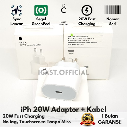 Charger iPhone 20W Original Adaptor Type C Kabel Fast Charging iPhone 11 Pro 12 12 Pro