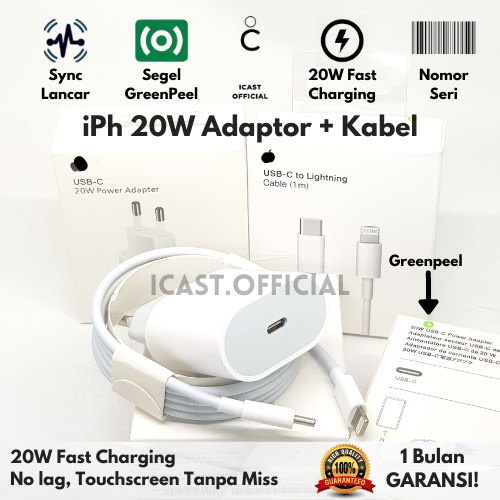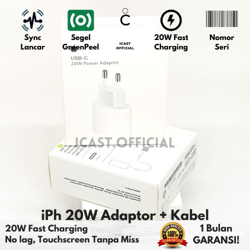 Charger iPhone Adaptor 20W Type C + Kabel Fast Charging iPhone 11 12