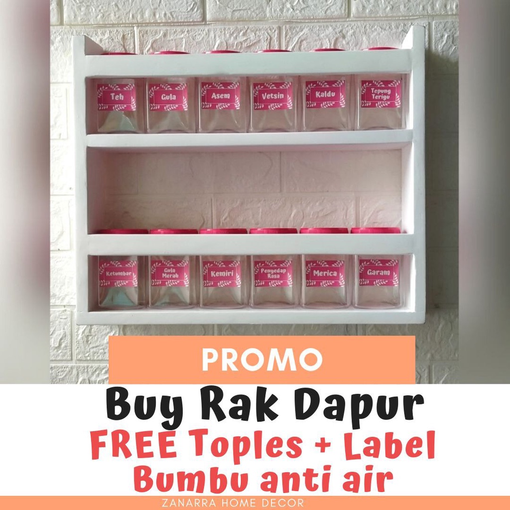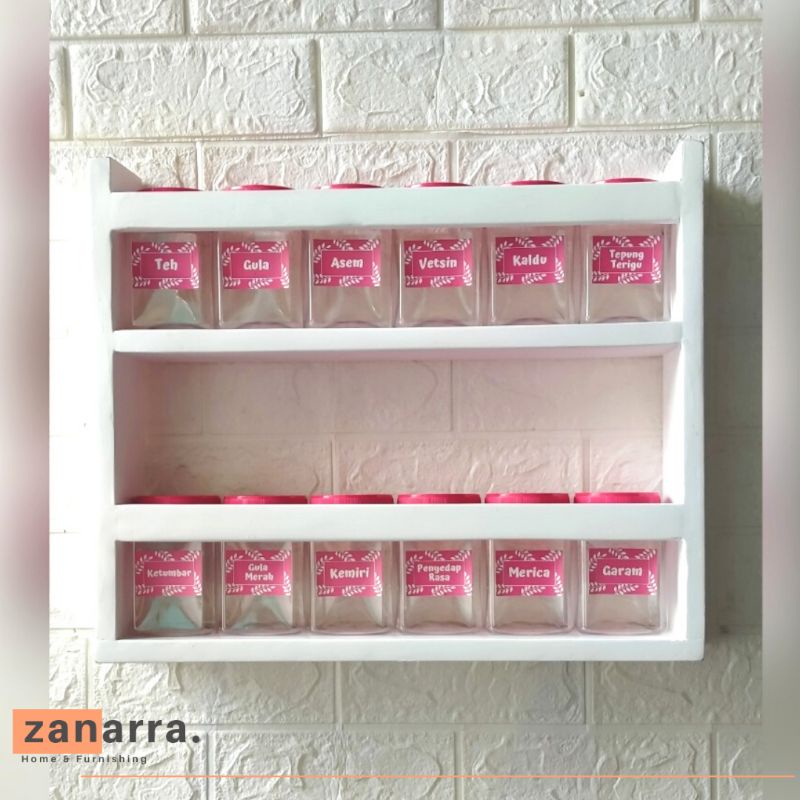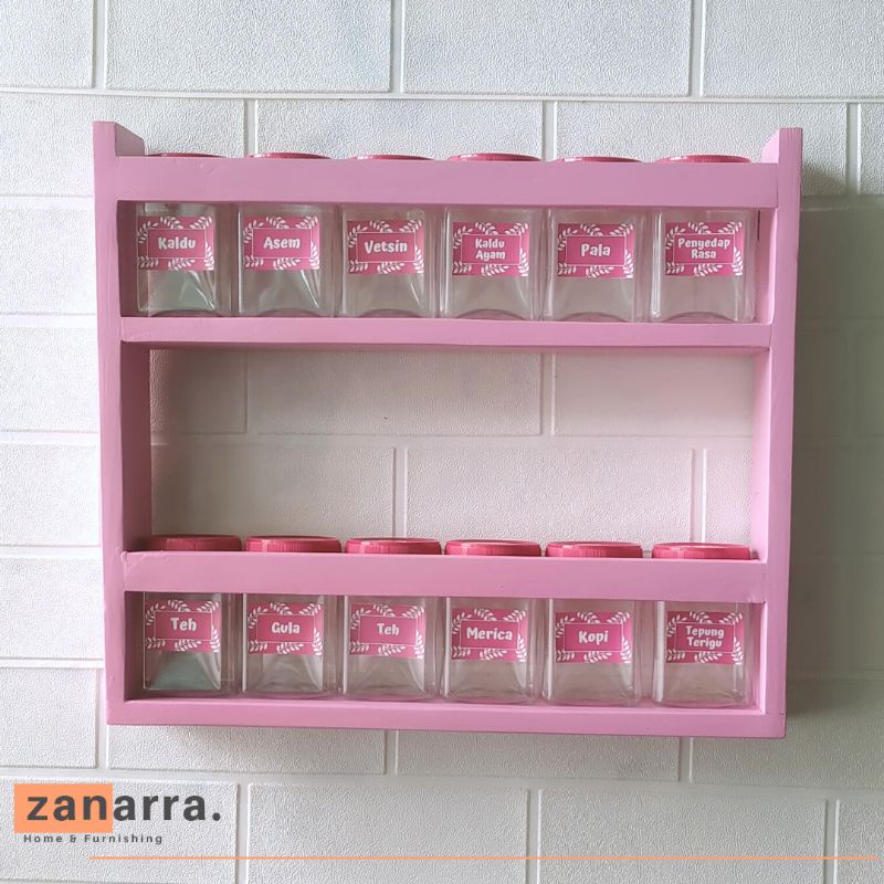 Rak Dapur Gantung Susun Rak Bumbu Dapur Dinding Minimalis Shabby Chic Warna Pink Merah Muda Gratis Toples Bumbu