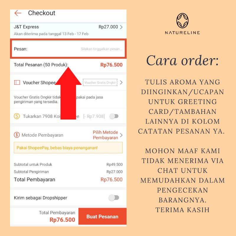 1. Pilihan aroma ditulis di NOTES PESANAN sebelum co! jika tidak, akan dikirim RANDOM. Mohon maaf tidak menerima lewat chat utk memudahkan dlm mengecek resi🙏