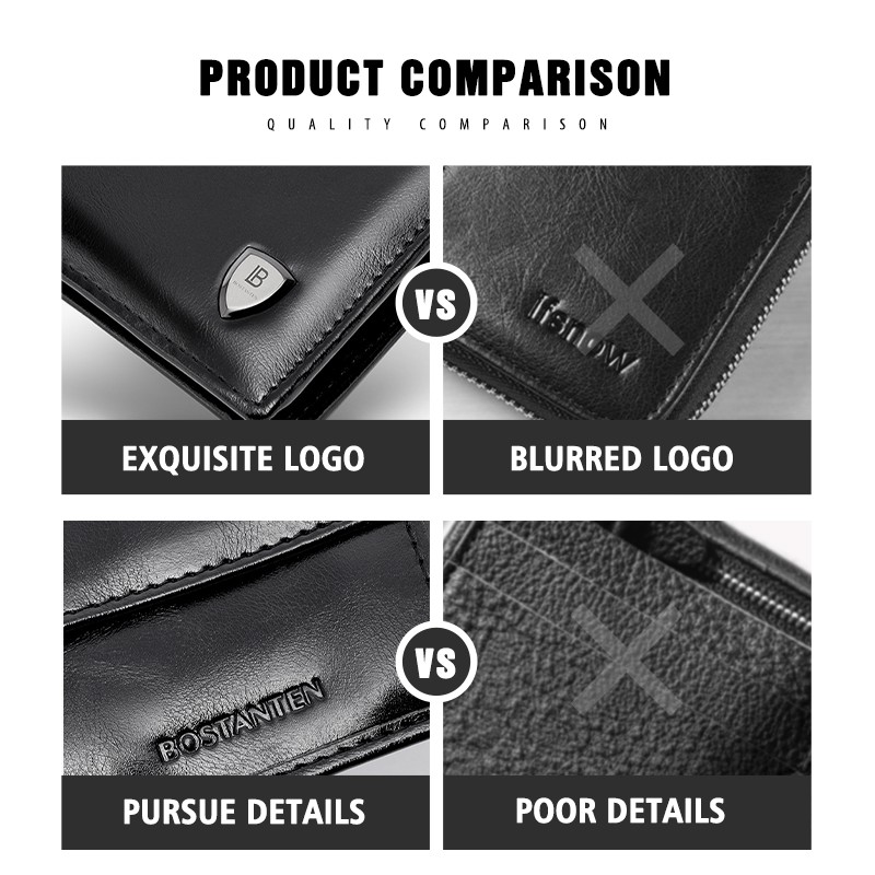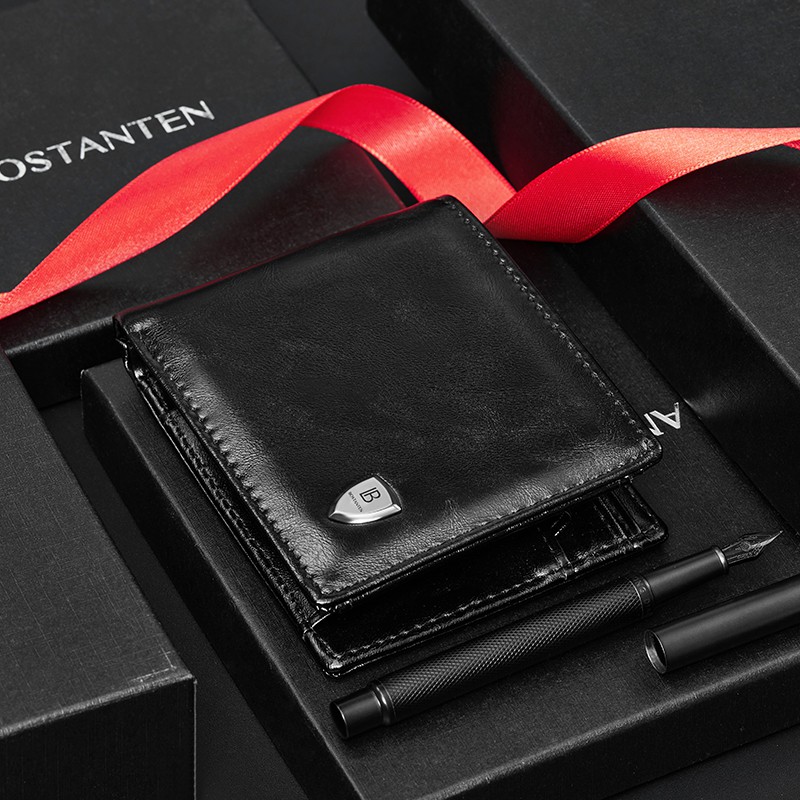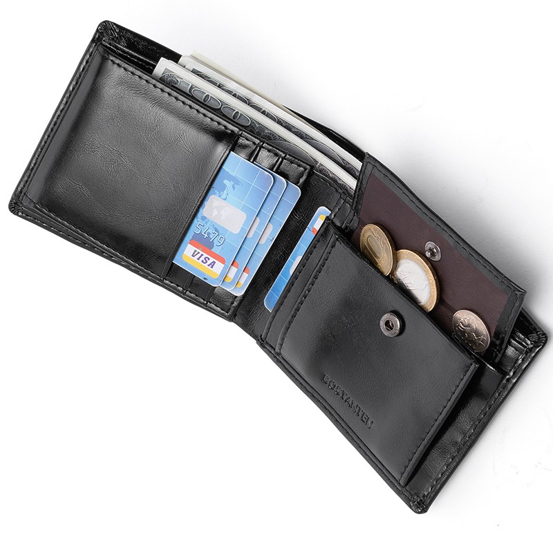 BOSTANTEN Dompet Pria Koin Ritsleting Kulit PU Tiga Kali Lipat Hitam/Coklat/Kopi
