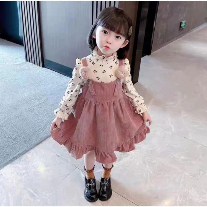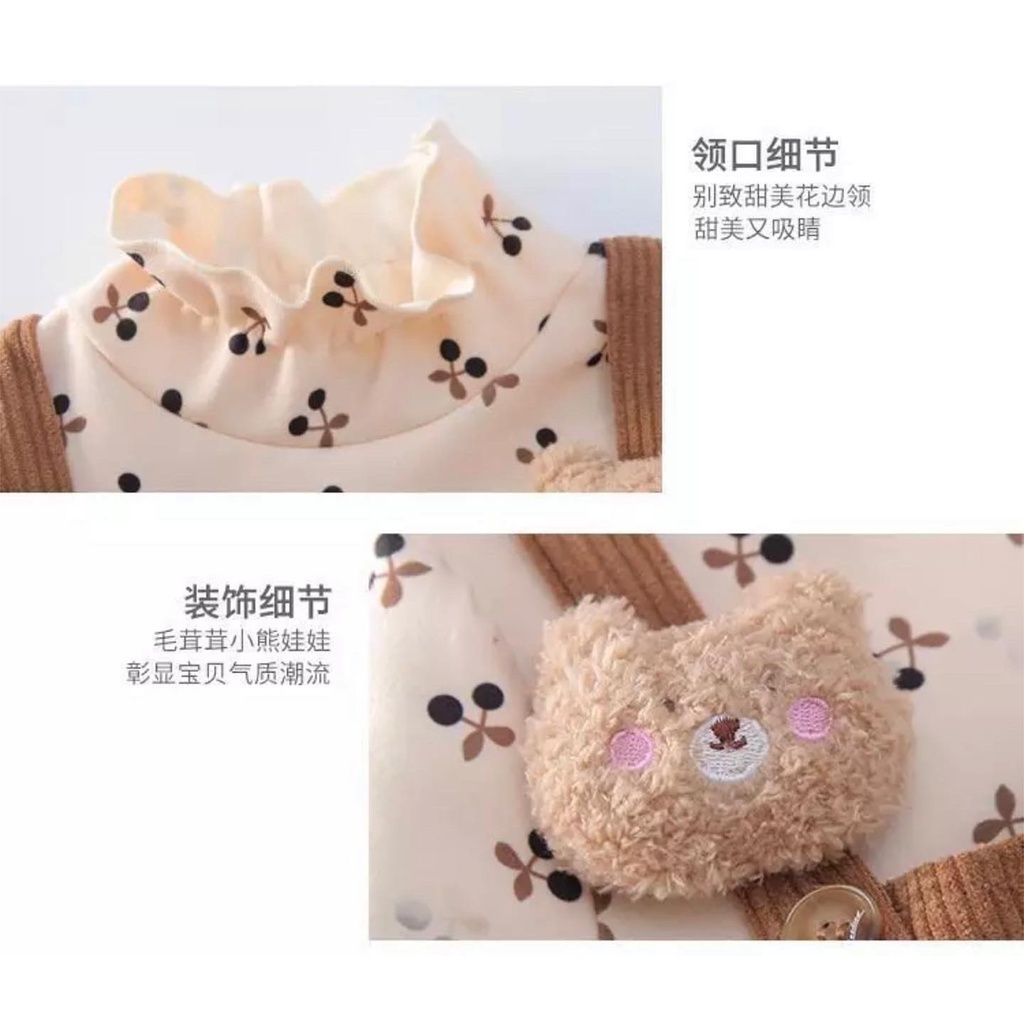 PREMIUM DRESS IMPORT CORDUROY CHERRY TED Jumpsuit Import Anak Perempuan Terlaris