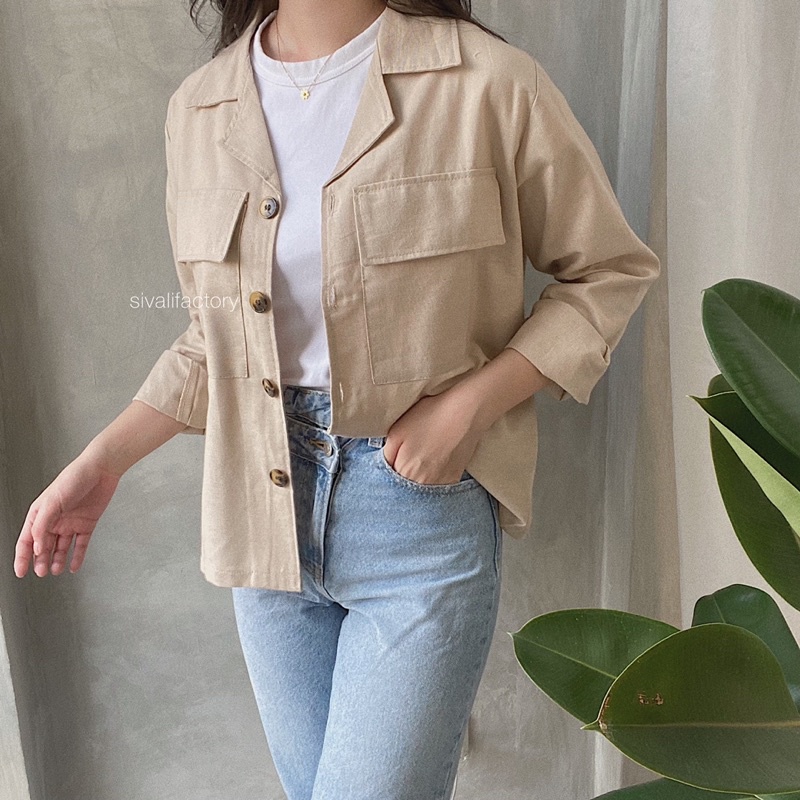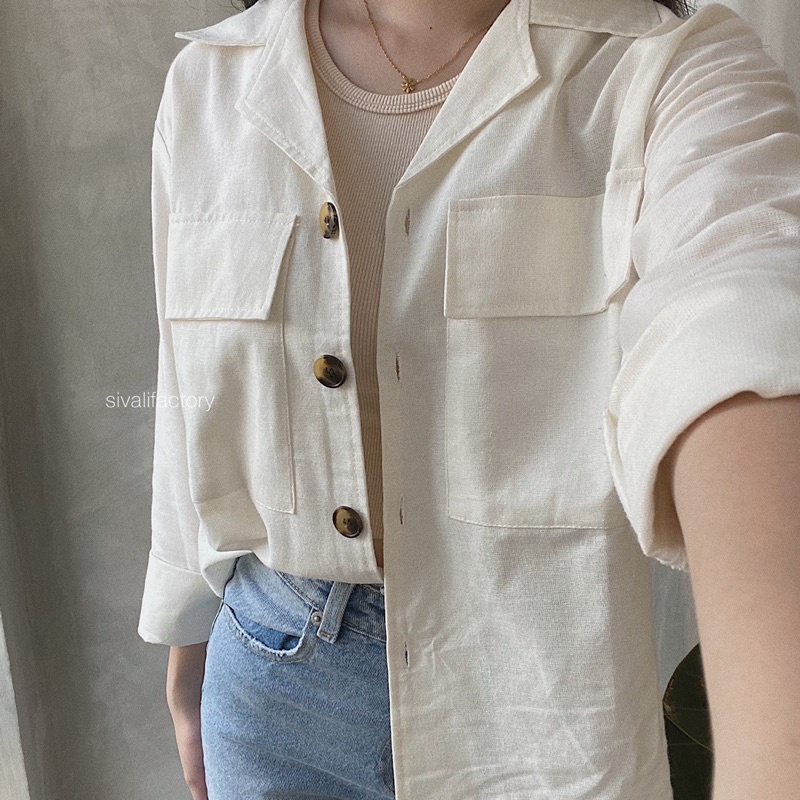 Claryn Outer Linen - Kemeja Linen - Atasan Wanita | Kardigan Saku 2278