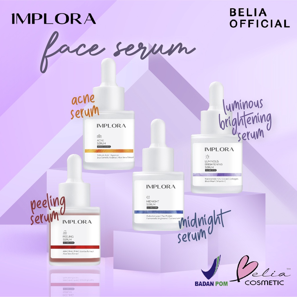 #IMPLORA #faceserum #serumwajah #acneserum #midnightserum #luminousbrighteningserum #serumjerawat #peelingserum #belia #cosmetic #beliacosmetic #promobelia #promoshopee