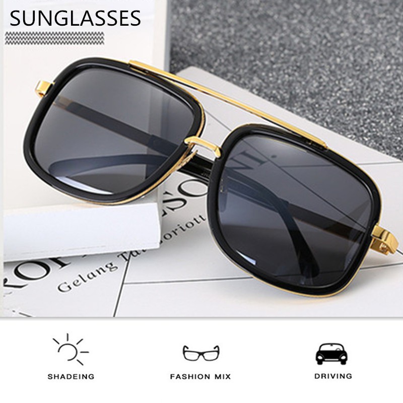 Bitzen Kacamata Hitam Pria Polarized Metal Gaya Korean Fashion Tony Stark Sunglasses UV400