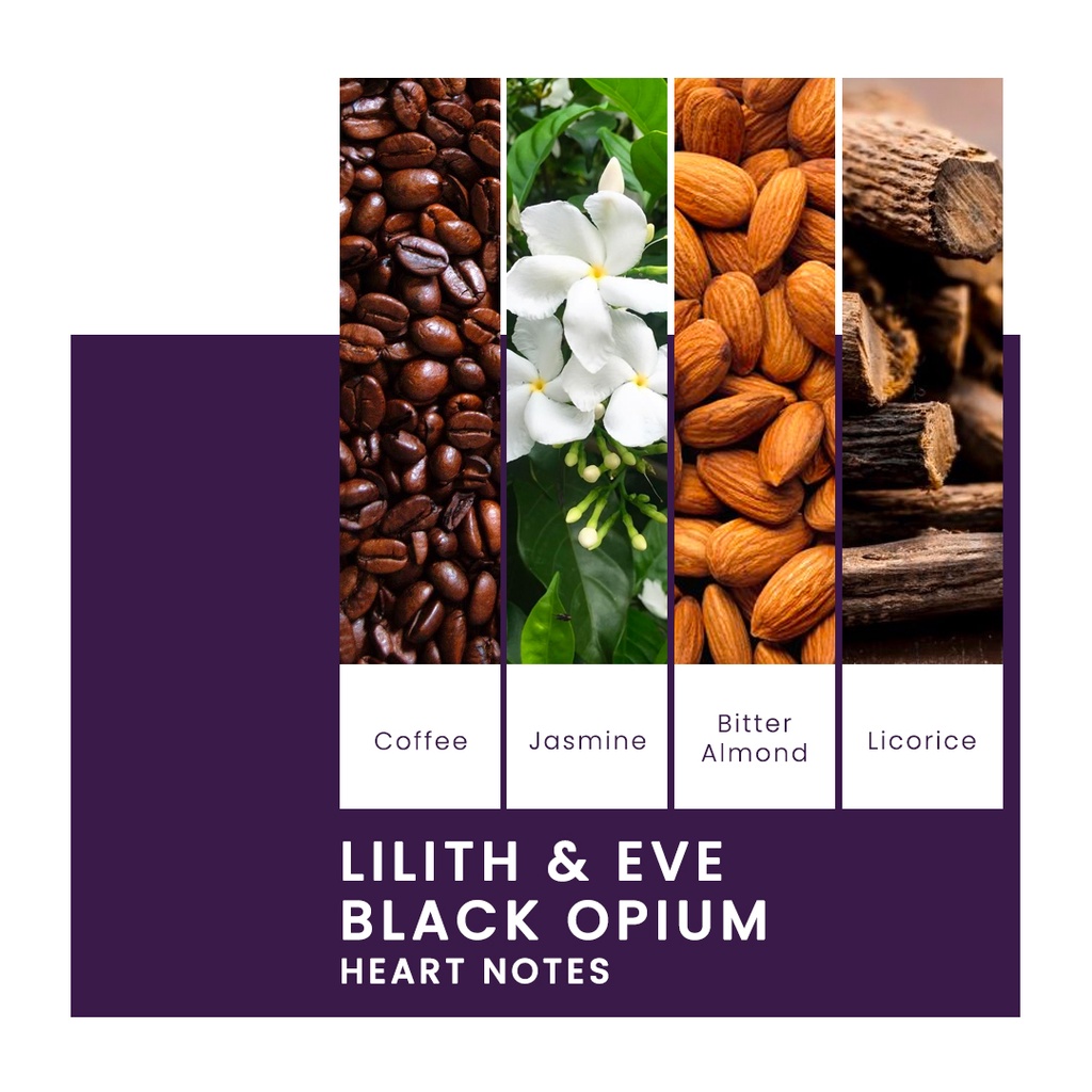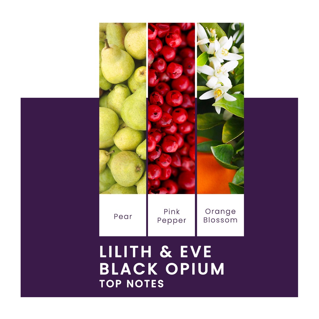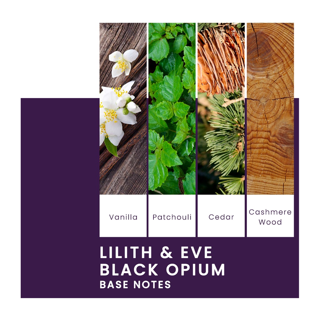 Parfum Black Opium dari Lilith & Eve adalah varian Eau De Parfum yang mewakilkan kepribadian dari sisi pribadi Lilith.