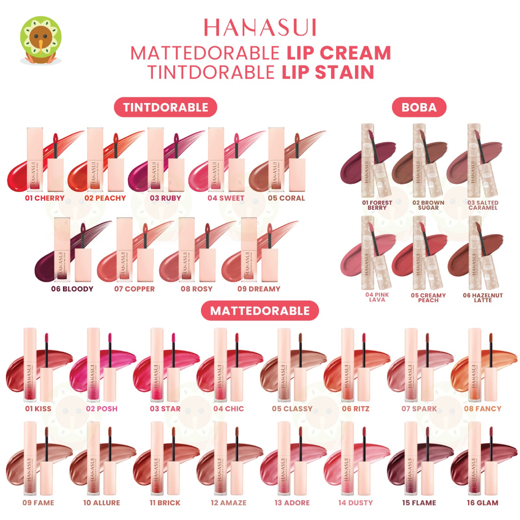 HANASUI BOBA MATTEDORABLE LIP CREAM - HANASUI TINTDORABLE LIP STAIN - HANASUI LIPTINT - BIBIR & BLUSH ON - LIP & CHEEK