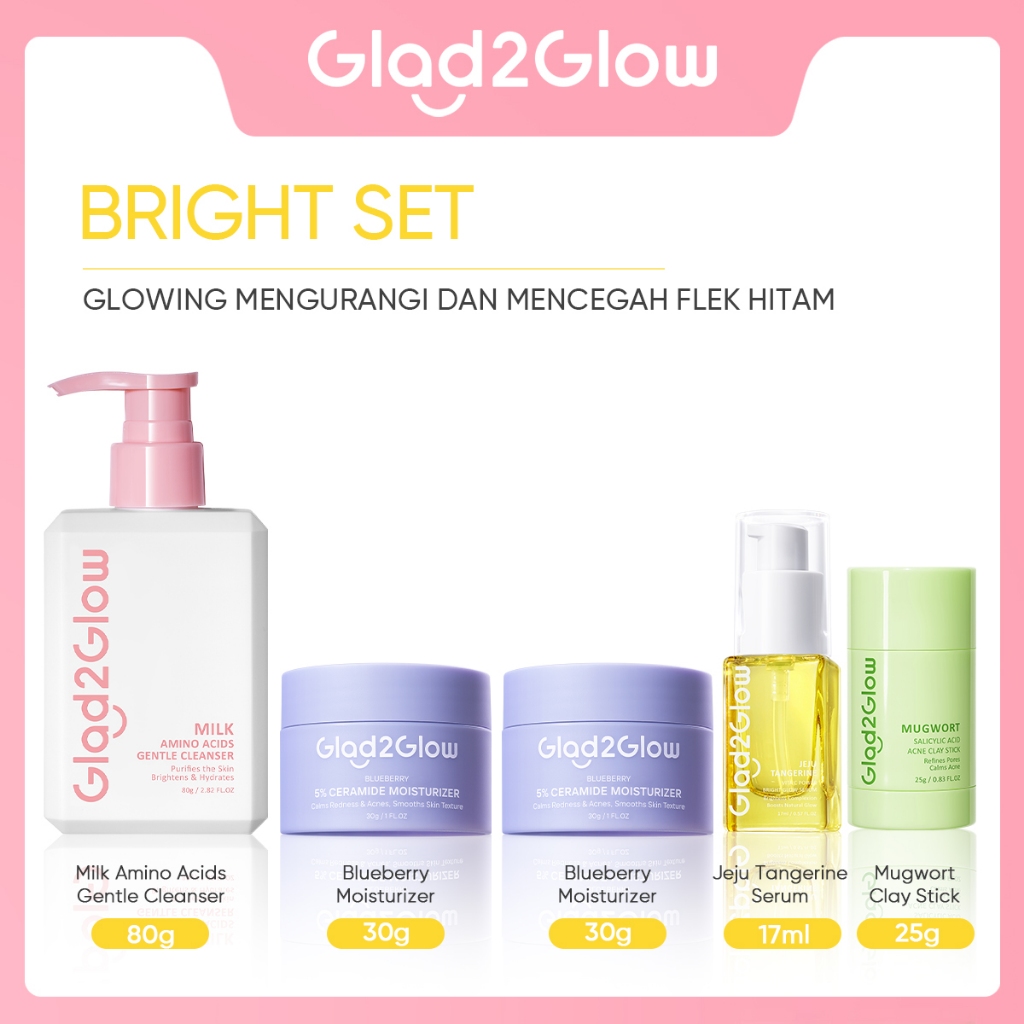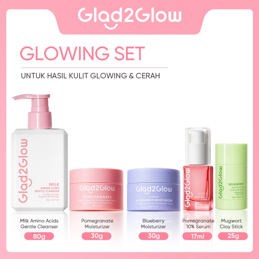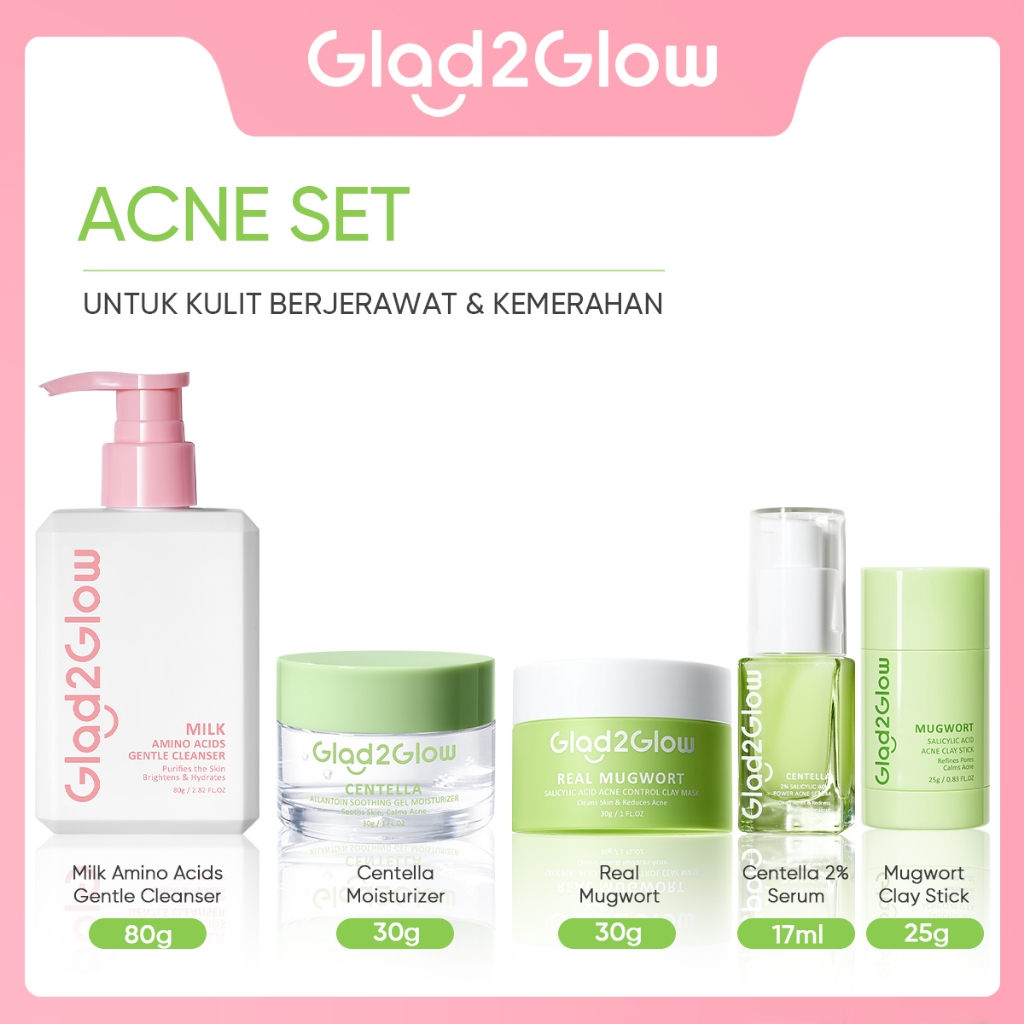 【PRE-ORDER】SPECIAL BUNDLE 5 in1 Glad2Glow 5pcs Paket Skincare Moisturizer Serum Clay Mask Face Wash-ACNE KIT GLOWING