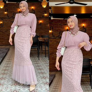Cahya gamis / gamis busui friendly shakila combi tille + brukat
