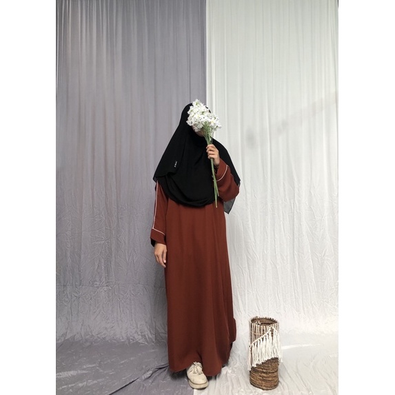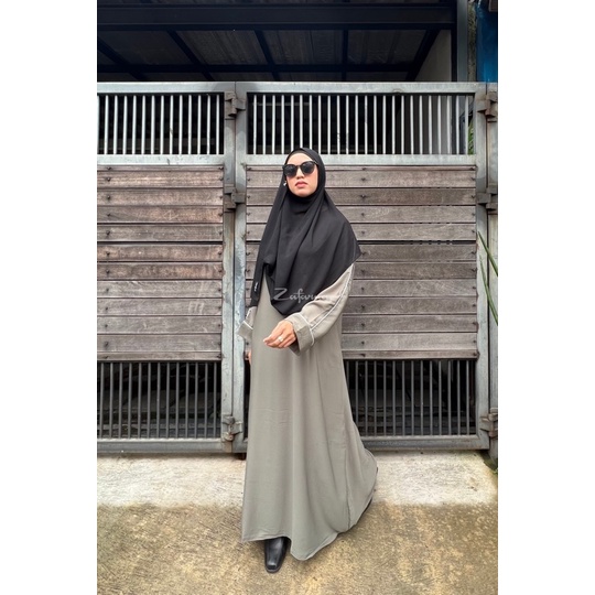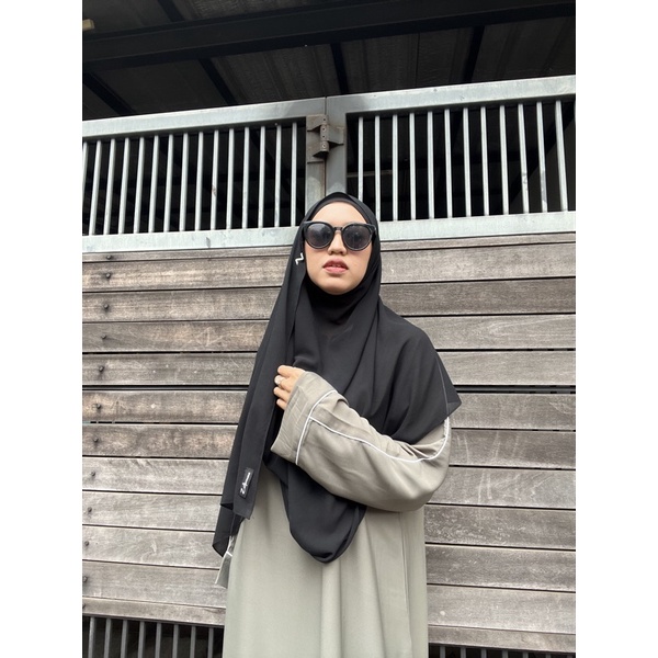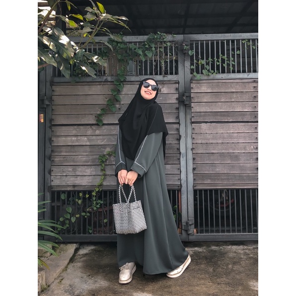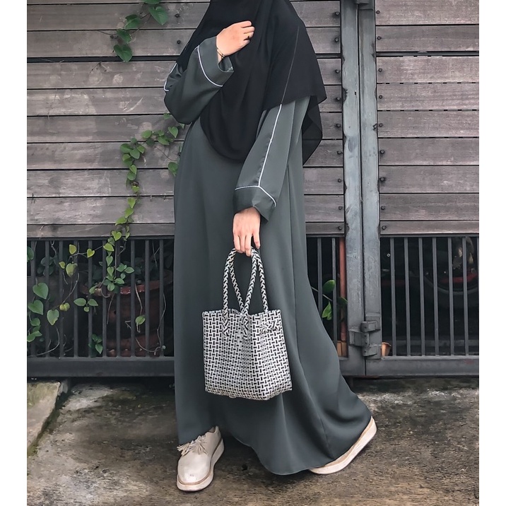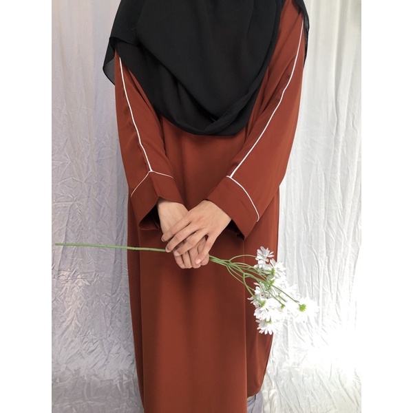cutting loss khas abaya simple tapi tetap manis karena aksen bisban putih pada lengan