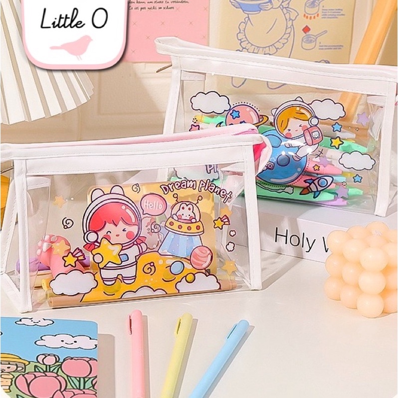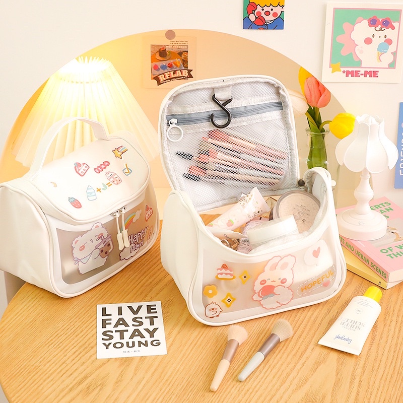 Simple Pouch Transparant make up pouch lucu pouch Traveling free sticker