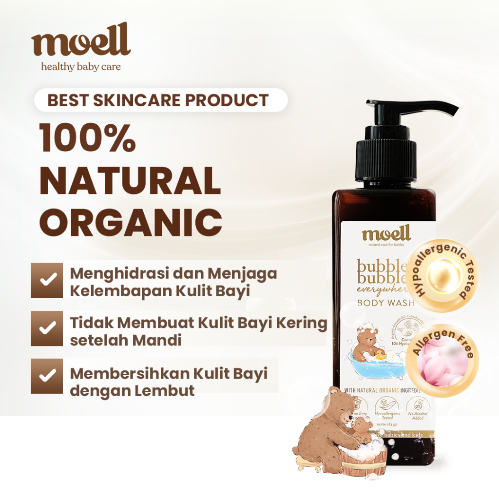 Moell Special Bundling Body Wash 185gr & Shampoo 185gr - Skincare Baby - Natural Organic