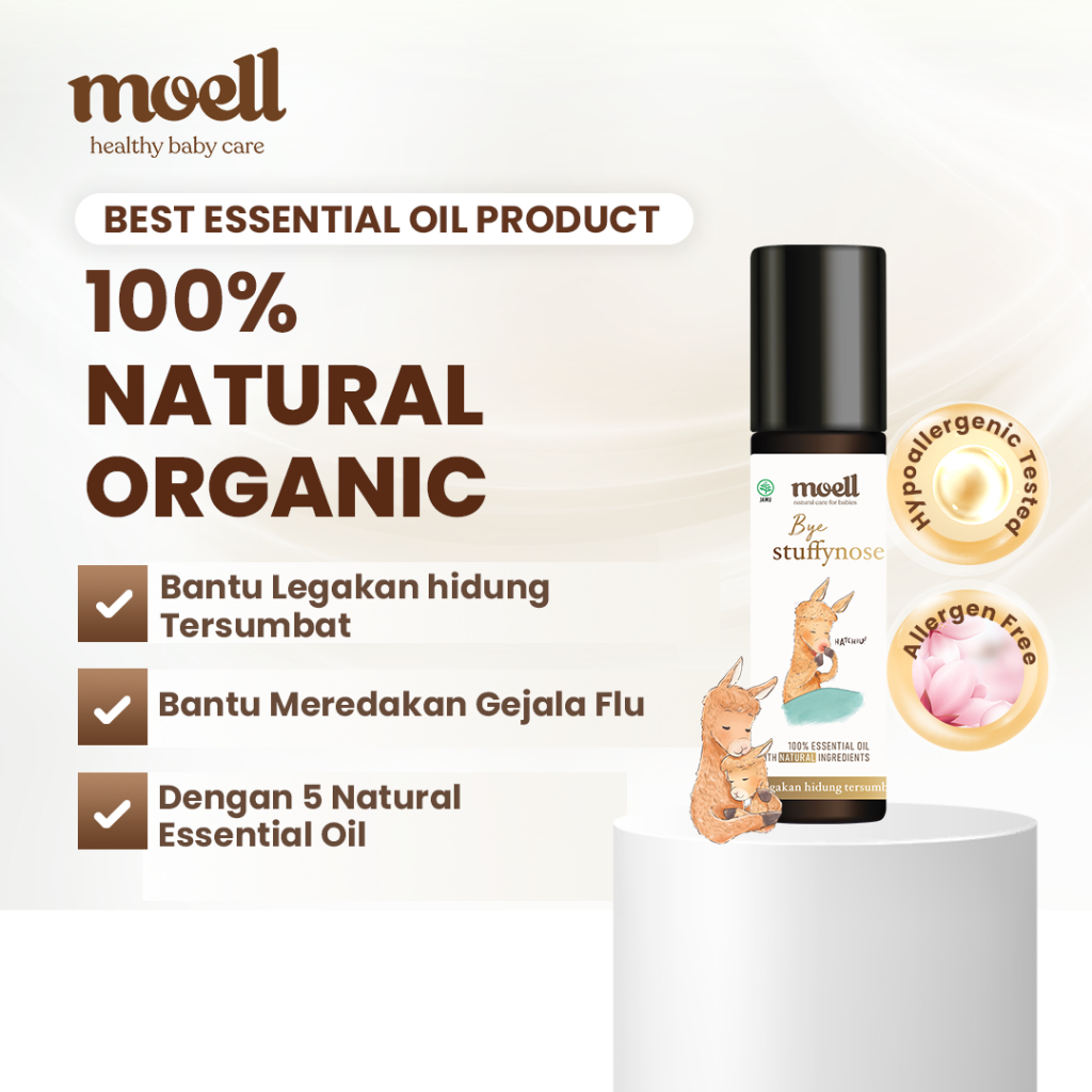 Moell Bye Stuffynose Natural Essential Oil 8ml - Melegakan Flu Batuk Pilek - BPOM