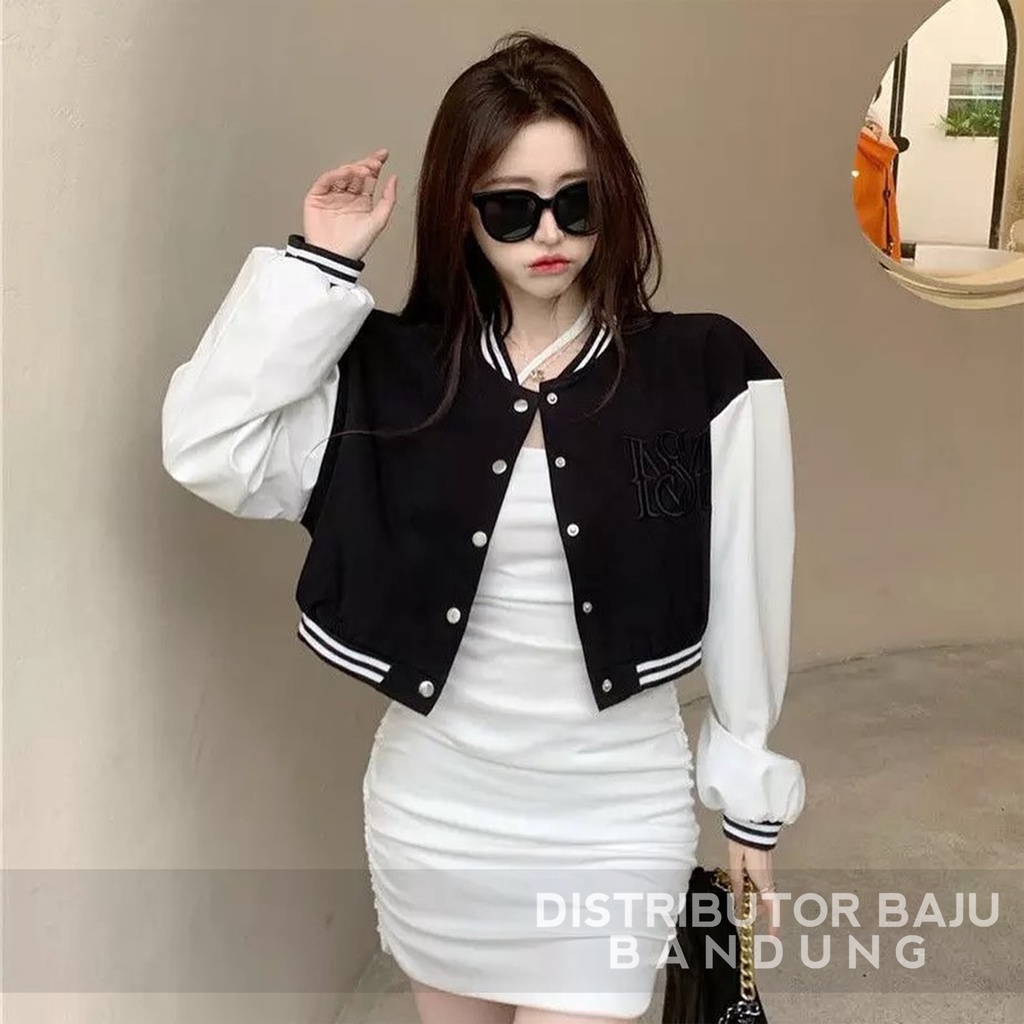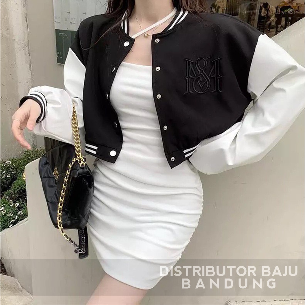 Jaket Baseball Crop | Korean Style Varsity | Pakaian Wanita | Jaket Wanita | Bahan Fleece | Allsize
