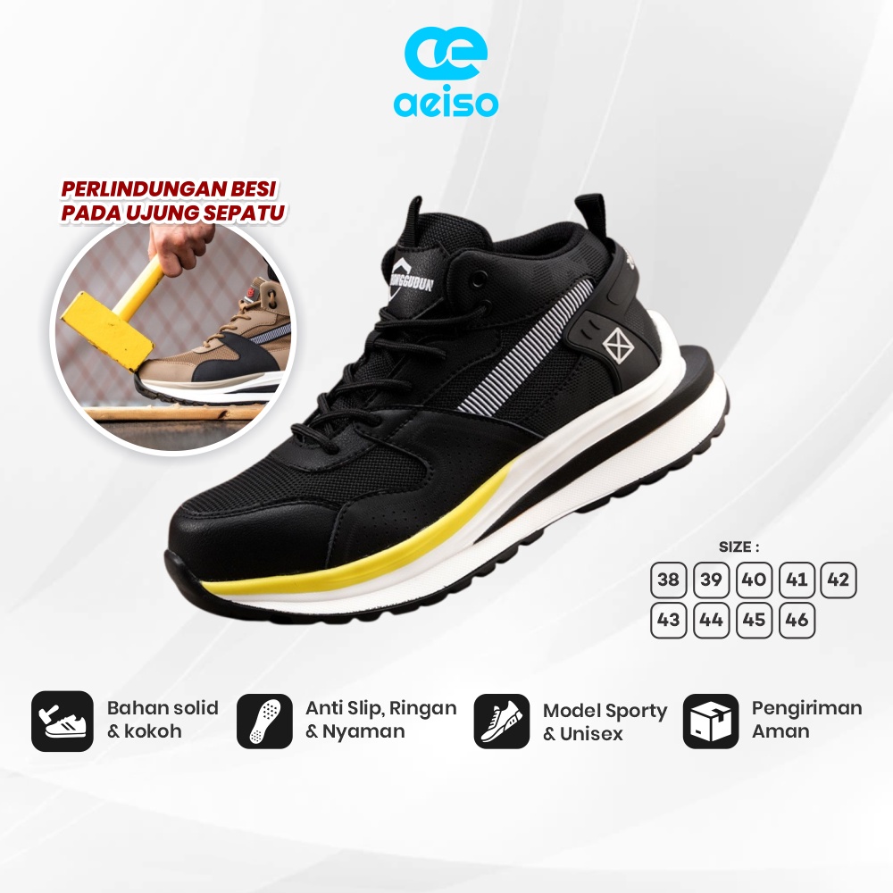 Sepatu Safety Pria Aeiso V11 Sneakers Sporty Import Ringan Ujung Besi