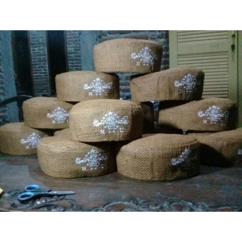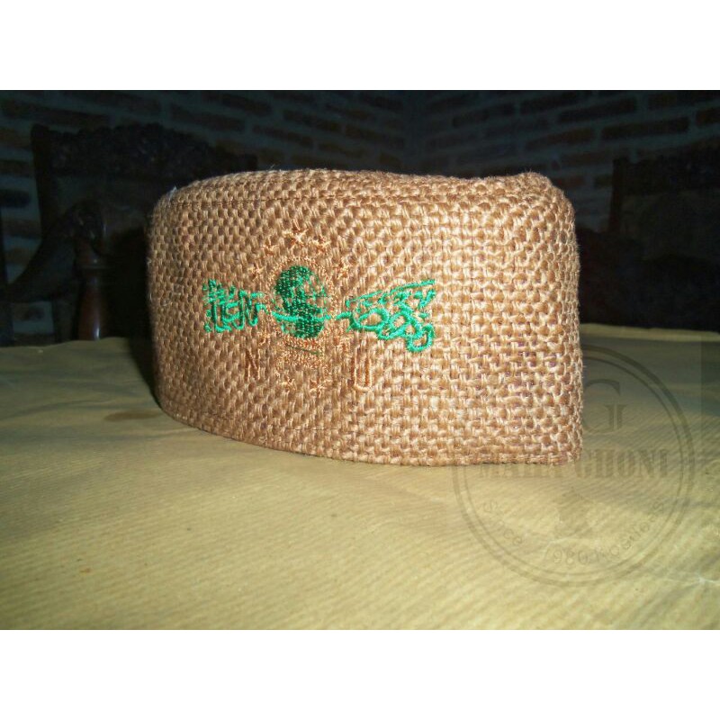 Peci etnik berbahan dasar serat tumbuhan rosela/jute,biasa disebut rami/goni