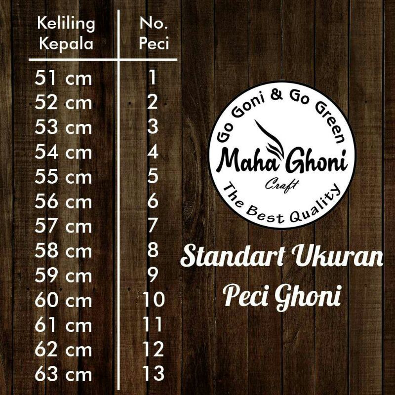 Ukuran standar peci nasional