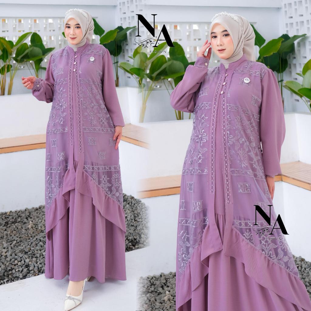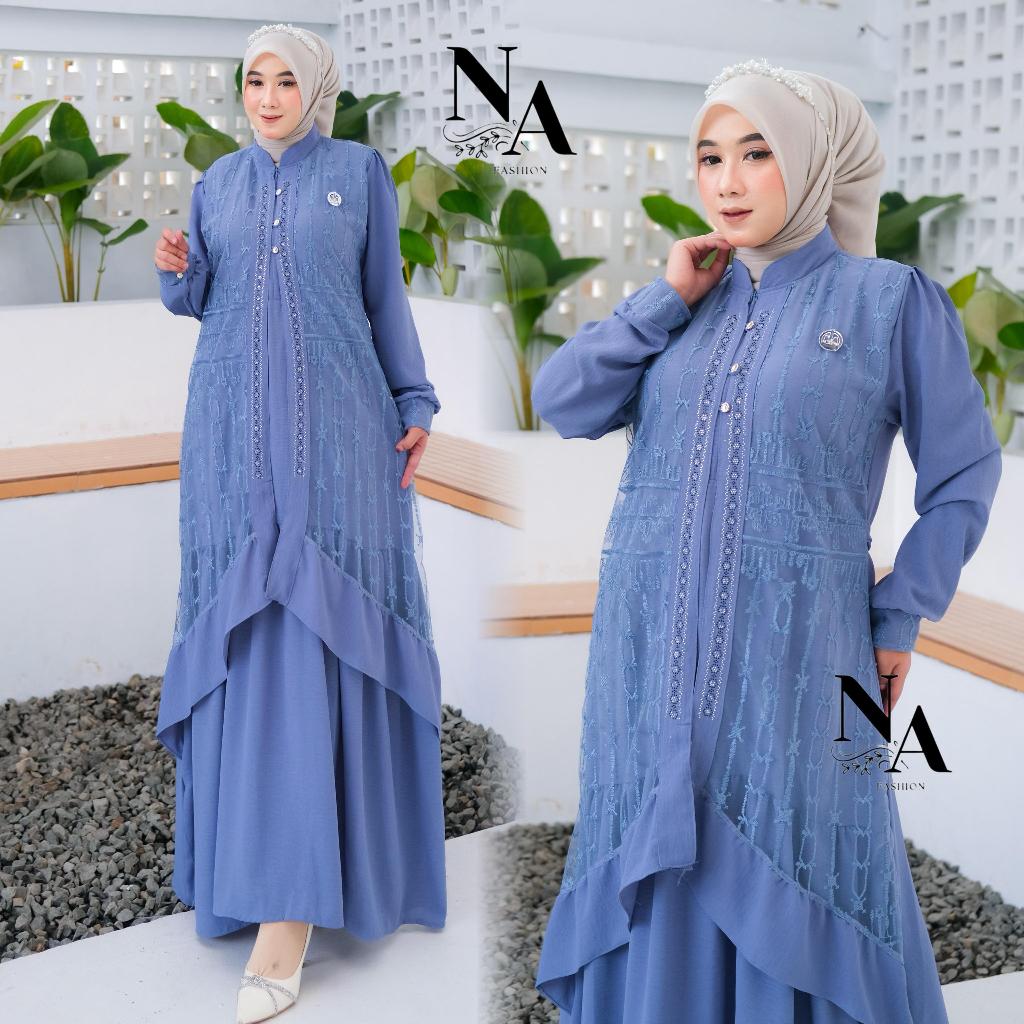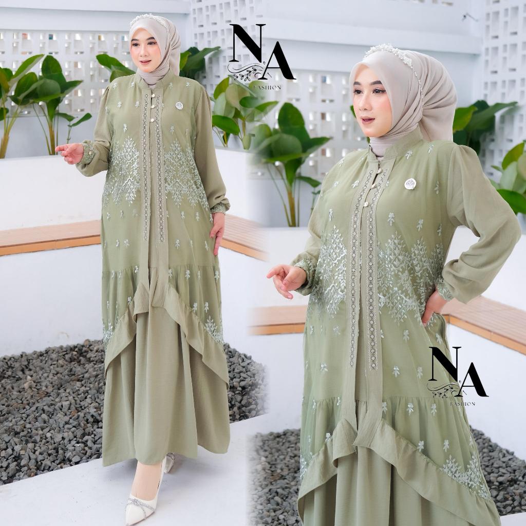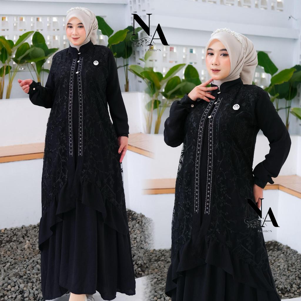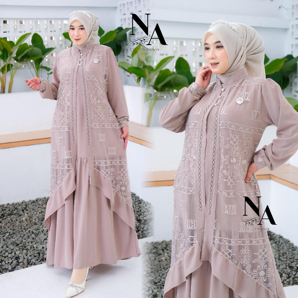 Na Fashion-ZAHRA Dress Gamis Trendy Terbaru Bahan Crinkle Mix Brokat Sapto Anggun Mewah Cantik Elegant