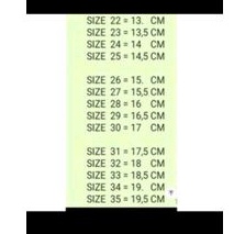 Bahan: Sintetis *Size : 22-35 *Bahan berkualitas dan tidak mudah rusak *desain yang elegan dan modis cocok dipakai oleh semua Orang