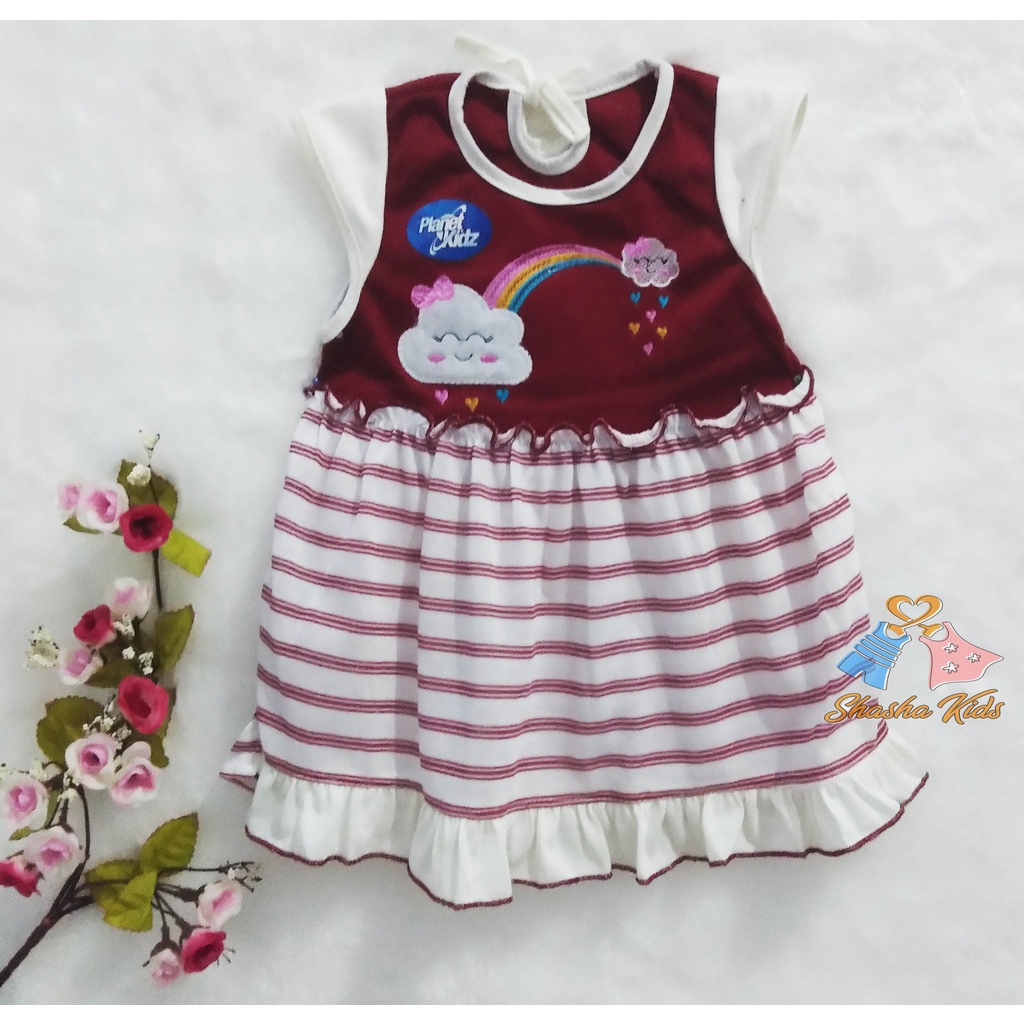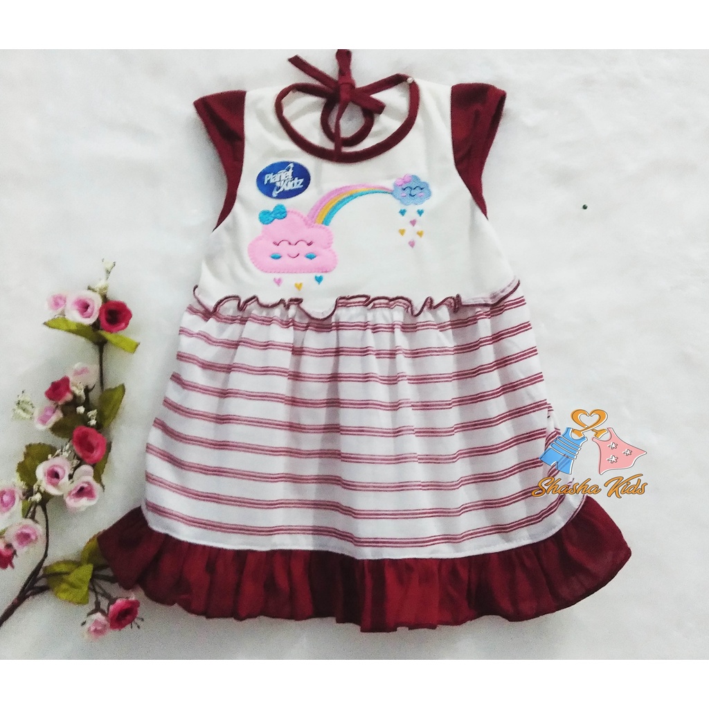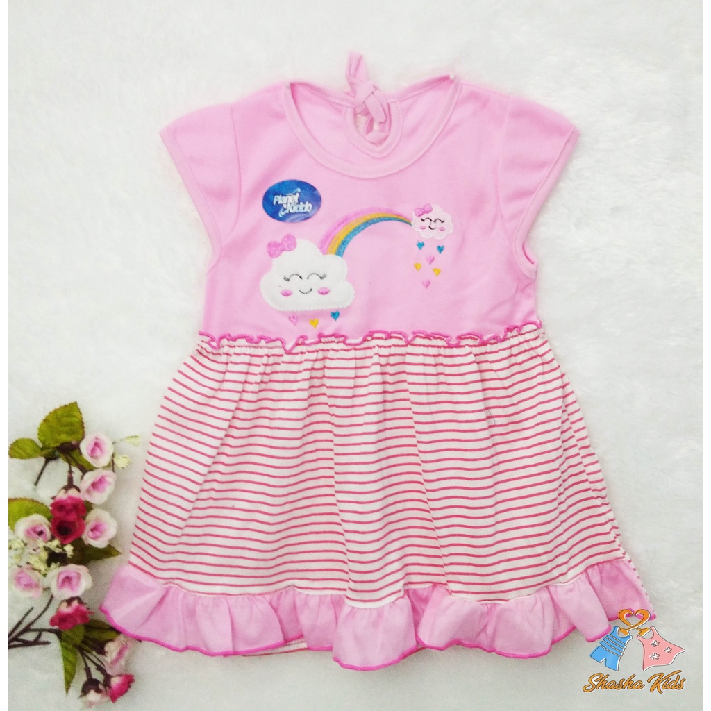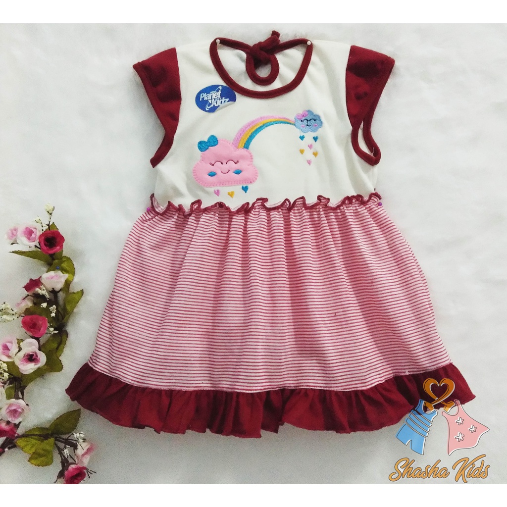 [L-010] Baju Bayi Perempuan/Dress Bayi Perempuan Planet Kids cantik motif pelangi lucu 0-6 bln